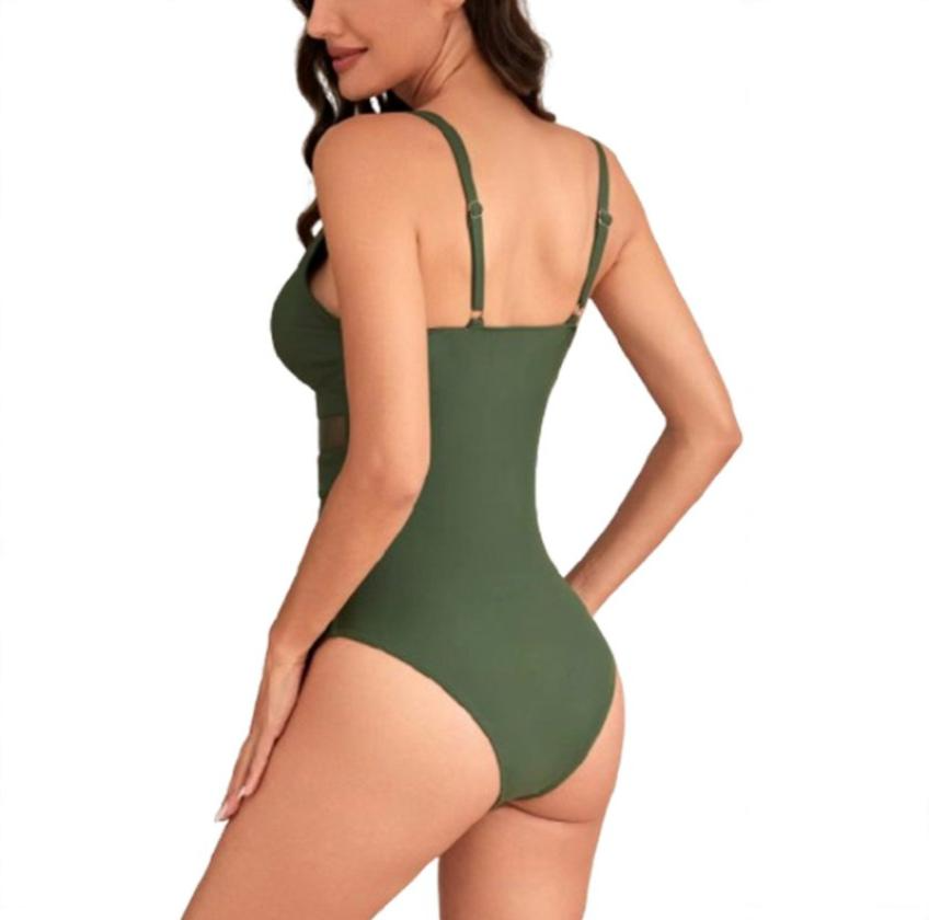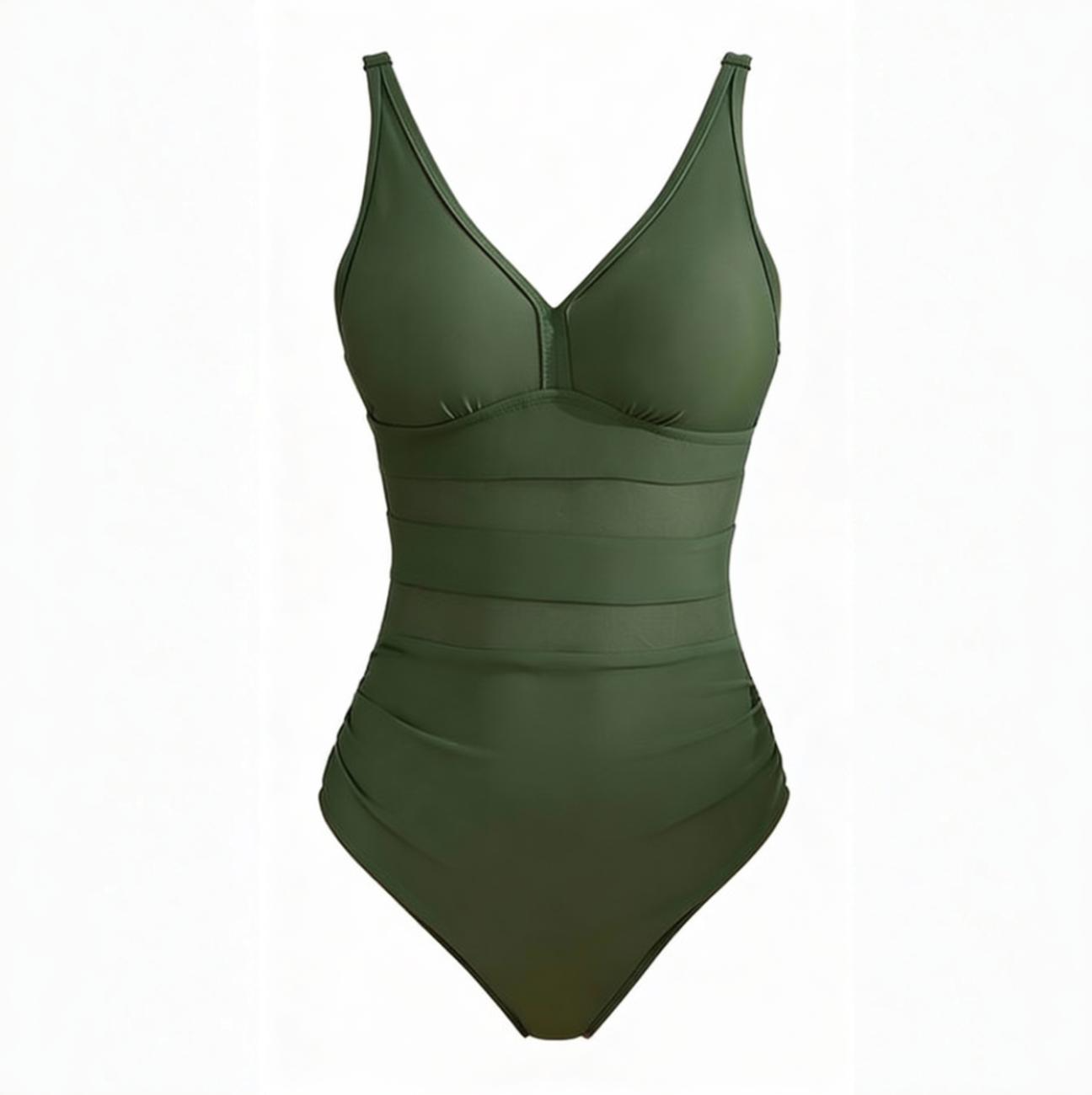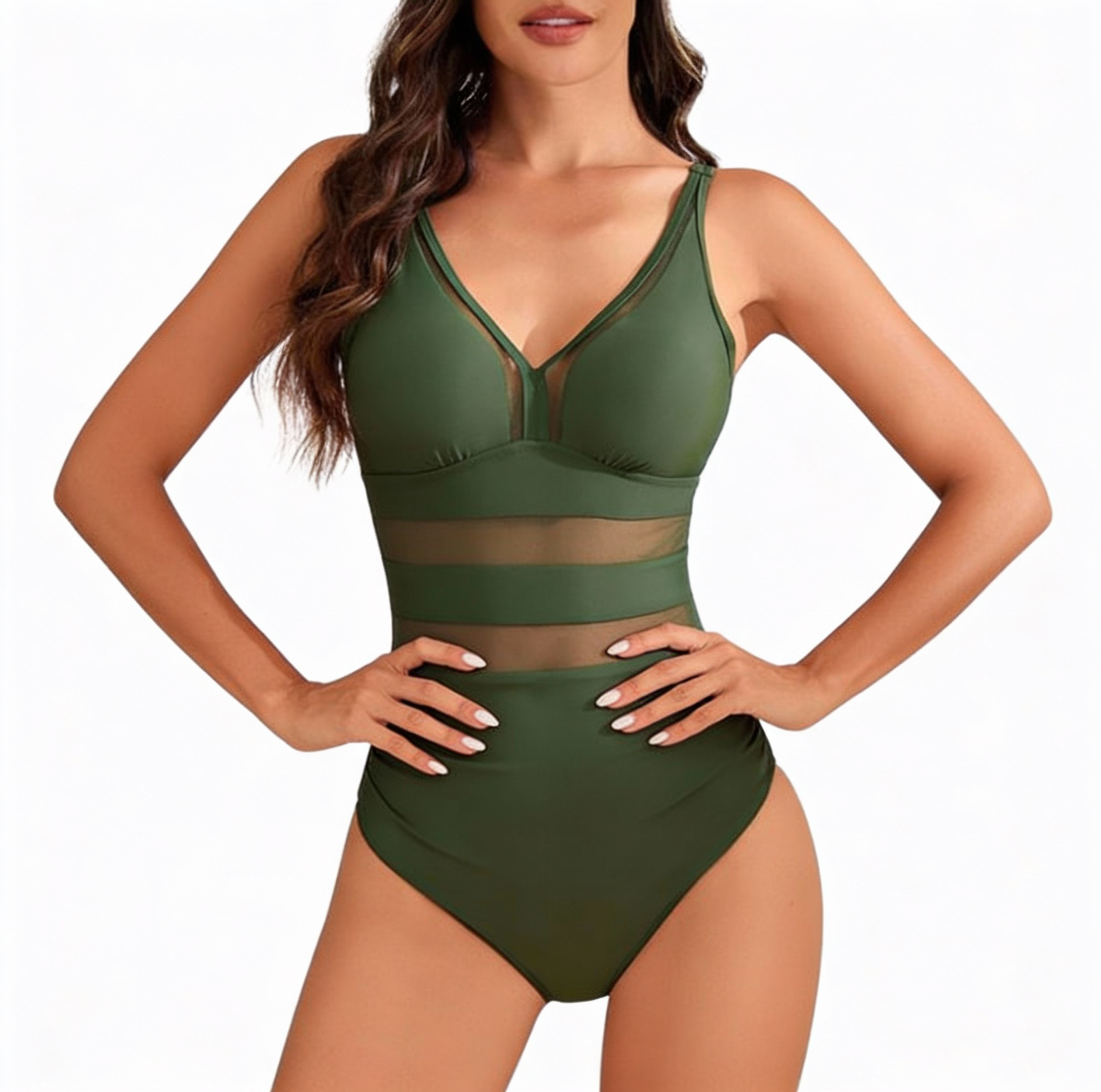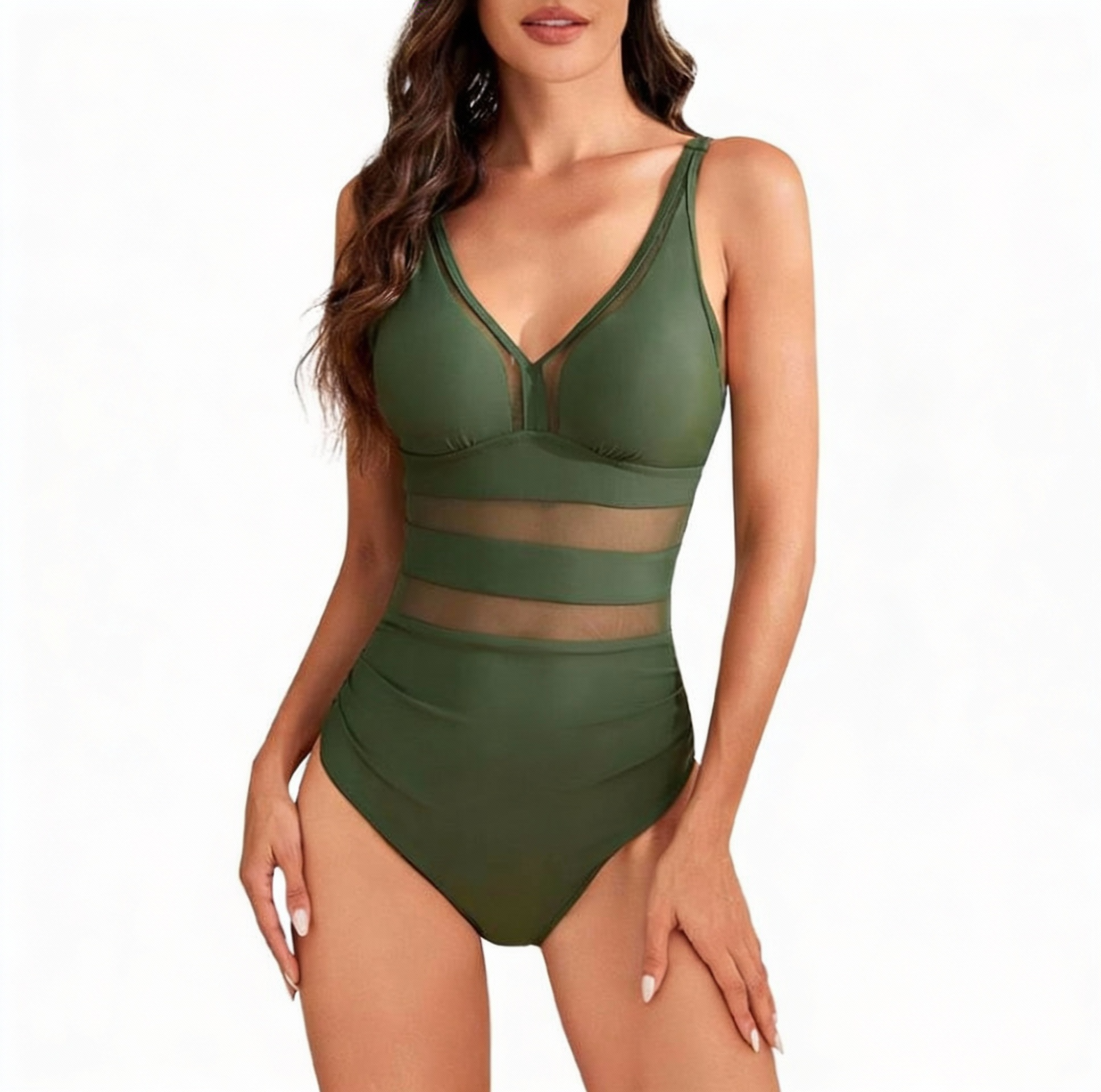 Stijlvol groen aansluitend badpak voor dames. Gemaakt van comfortabel stretchmateriaal met een elegante open rug. Perfect voor strand en zwembad.