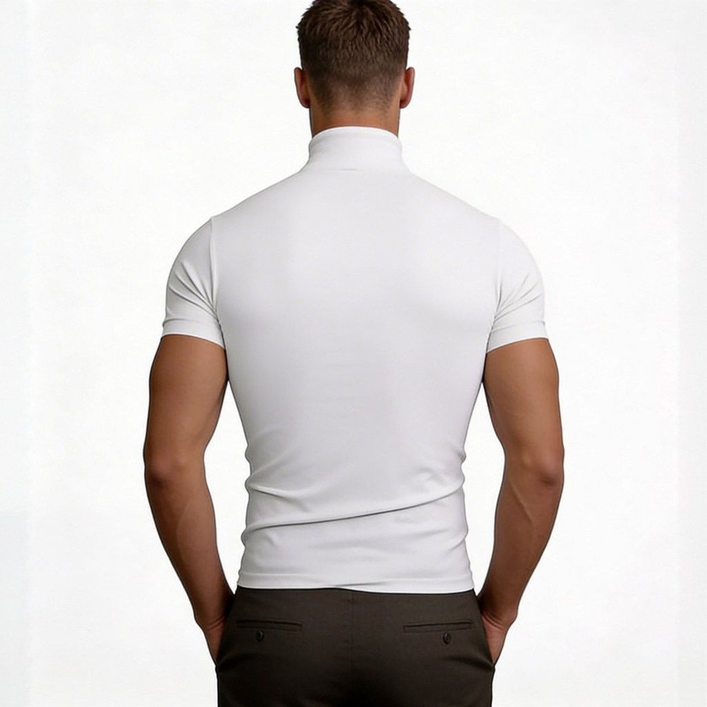 Dit sportieve witte polyester coltrui shirt combineert een frisse uitstraling met functioneel draagcomfort. Het lichtgewicht en ademende polyester voert vocht efficiënt af en droogt snel, waardoor het ideaal is voor sportieve activiteiten en dagelijks gebruik. De aansluitende pasvorm volgt het lichaam voor een atletisch silhouet, terwijl de korte mouwen en moderne colkraag zorgen voor een strakke, eigentijdse look. De elastische stof geeft voldoende bewegingsvrijheid en blijft prettig zitten tijdens beweging. Dankzij het vormvaste en onderhoudsvriendelijke materiaal behoudt het shirt ook na veelvuldig dragen zijn pasvorm en kleur. Perfect voor trainingen, fitness of een verzorgde sportieve stijl in het dagelijks leven.