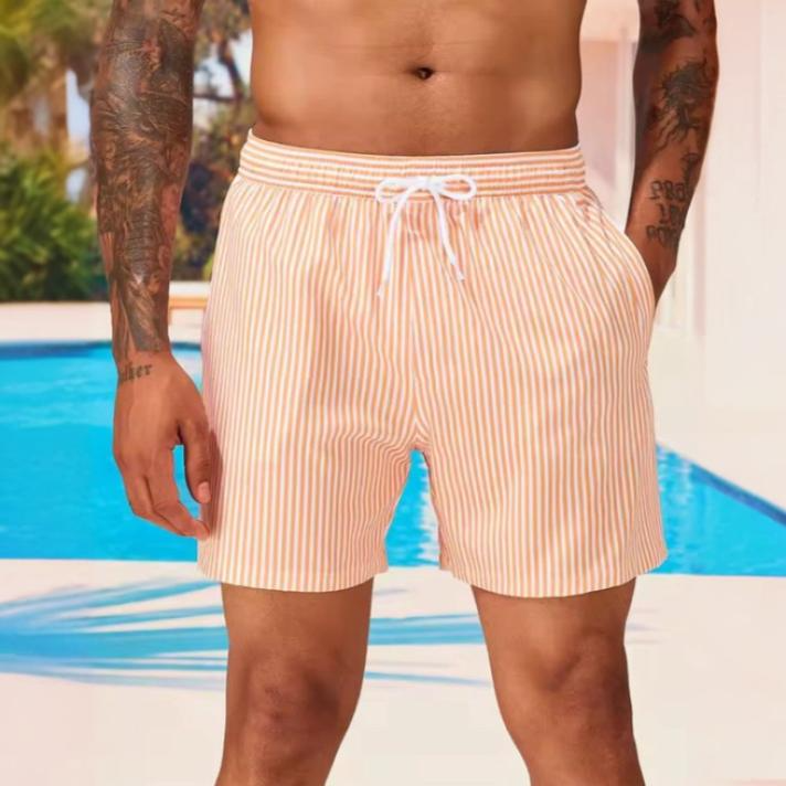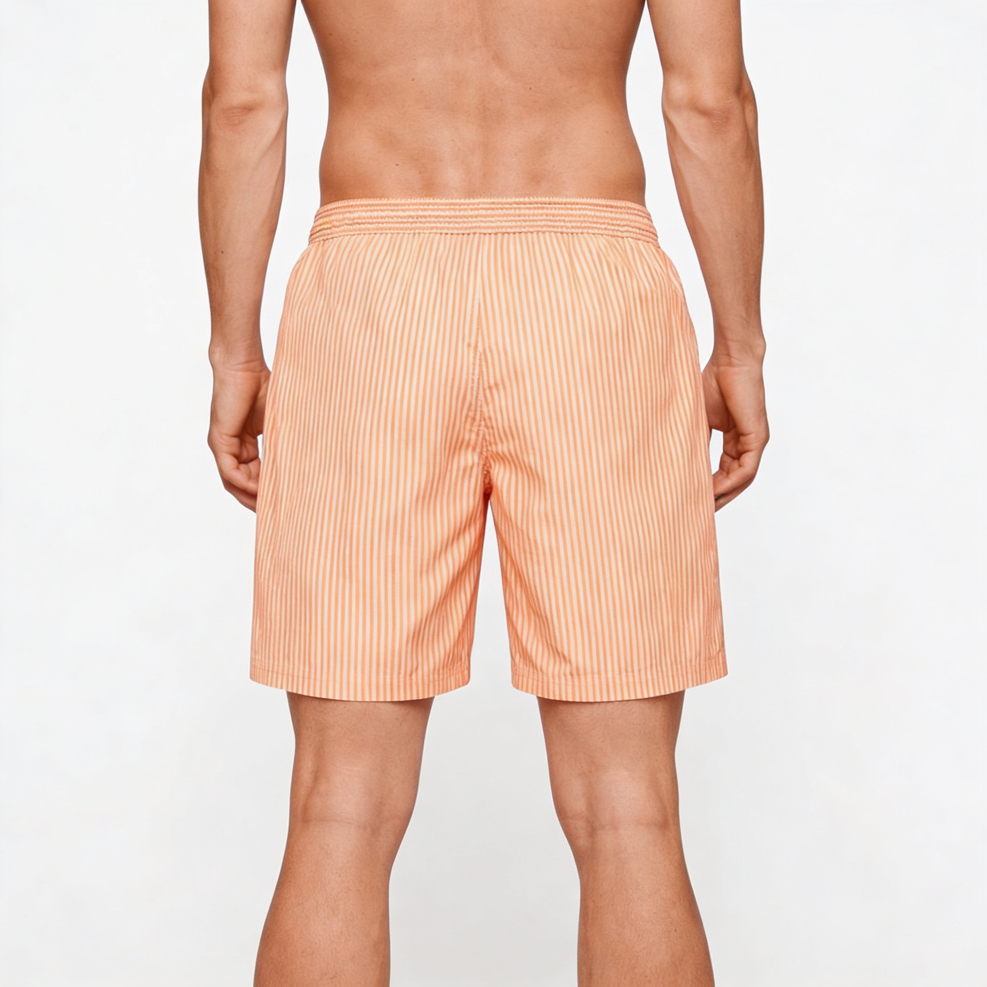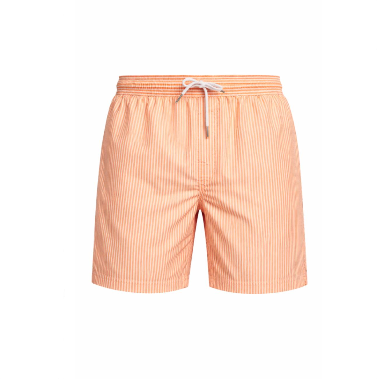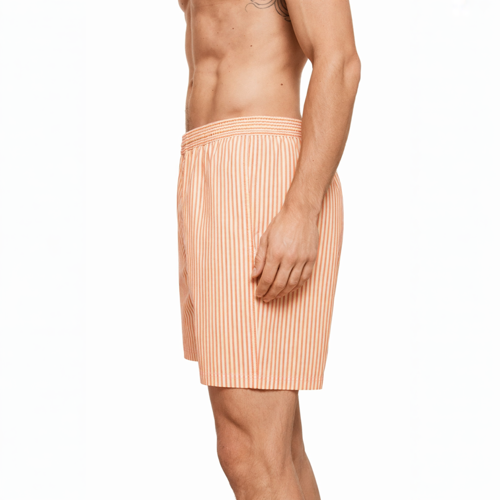 Deze oranje-wit gestreepte heren zwembroek heeft een frisse, zomerse uitstraling en is perfect voor stranddagen en zwembadmomenten. De korte broek is gemaakt van sneldrogend materiaal en draagt comfortabel dankzij de elastische tailleband met aantrekkoord. Voor extra gemak is de zwembroek voorzien van twee handige steekzakken. Dit model heeft geen binnenbroek, wat zorgt voor meer bewegingsvrijheid en een luchtige pasvorm.