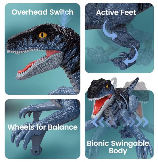 Deze op afstand bestuurbare dinosaurus zorgt voor uren speelplezier dankzij zijn realistische ontwerp en slimme techniek. De bionische, schommelende body en actieve poten bootsen echte loopbewegingen na, terwijl verborgen wieltjes extra balans geven. Met de afstandsbediening kan hij vooruit, achteruit, links en rechts bewegen of een automatische demo uitvoeren. De dinosaurus is USB-oplaadbaar en eenvoudig in gebruik. Gemaakt van stevig materiaal en ideaal voor kinderen die dol zijn op dinosaurussen en interactieve speeltjes. Afmetingen: ca. 21 cm lang, 10,4 cm breed en 8,2 cm hoog.