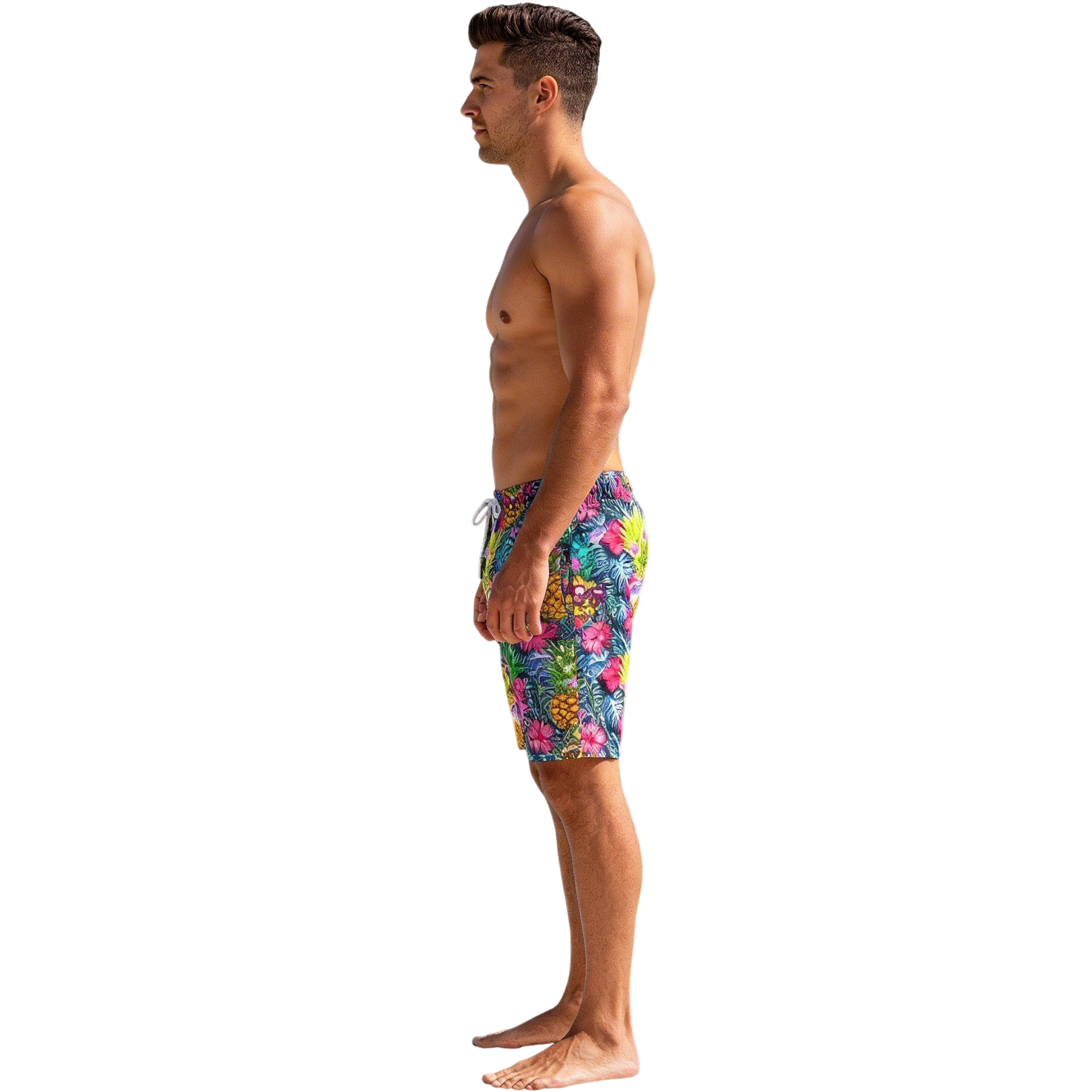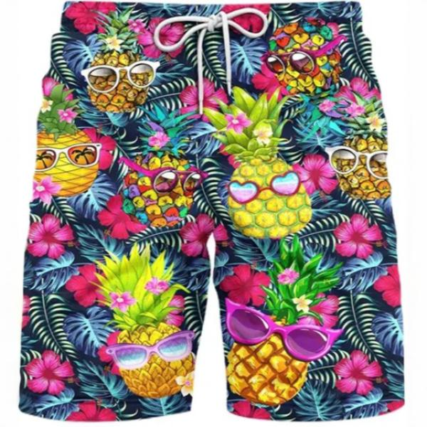 Ananas Hawaii print op een zwembroek.