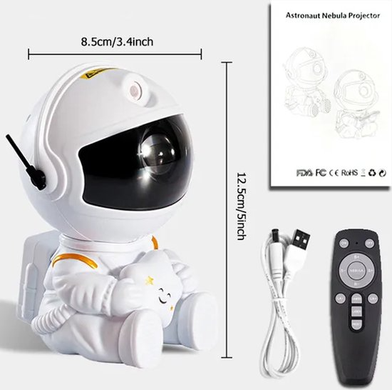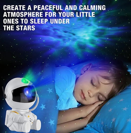Transformeer de kinderkamer in een buitenaards avontuur met onze astronaut nachtlamp, compleet met een projector die de magie van de sterrenhemel naar binnen brengt. Met zijn betoverende ontwerp en handige functies is deze lamp de perfecte aanvulling voor elke kleine ruimteliefhebber.