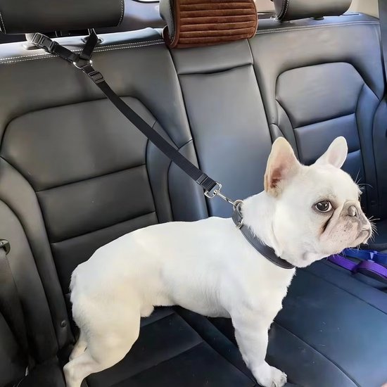 Praktische en verstelbare autogordel voor honden die veilig wordt bevestigd aan de hoofdsteun van de auto. Dankzij de stevige kliksluiting en metalen clip koppel je de gordel eenvoudig aan een halsband of hondentuig. De sterke, slijtvaste band zorgt voor extra stabiliteit tijdens het rijden en helpt plotselinge bewegingen te beperken. Ideaal voor veilig vervoer op de achterbank en geschikt voor verschillende automodellen. De lengte is verstelbaar, zodat je hond comfortabel kan zitten of liggen zonder bewegingsvrijheid volledig te beperken.