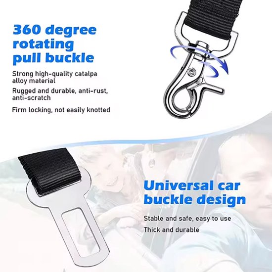 De lengte is verstelbaar en geschikt voor kleine en middelgrote honden. Dit product is bedoeld voor gebruik wanneer de auto geparkeerd staat en je jouw hond veilig voorin bij je wilt houden, zonder dat hij vrij door de auto beweegt.