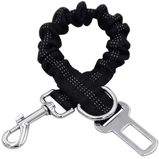 Deze verstelbare honden autogordel is gemaakt van sterk nylon met reflecterende stiksels voor extra zichtbaarheid. De 360° draaibare metalen haak voorkomt verdraaien en klitten, terwijl de elastische bungee schokken opvangt bij plotselinge bewegingen. Dankzij de universele gordelclip is hij eenvoudig te bevestigen in vrijwel elke auto.