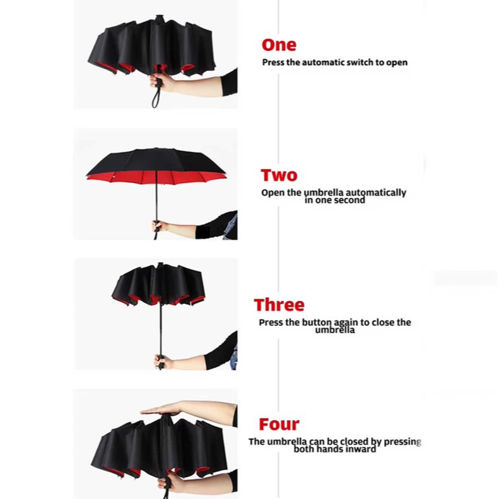 Deze duurzame en stijlvolle paraplu is ontworpen voor ultiem gebruiksgemak en bescherming tegen regen en wind. Met een diameter van 105 cm biedt hij voldoende dekking, en dankzij het volautomatische systeem kun je de paraplu met één druk op de knop openen en sluiten. De stevige constructie van metaal en vezel zorgt voor windbestendigheid, terwijl de waterafstotende stof je droog houdt. Opgevouwen is de paraplu compact en gemakkelijk mee te nemen, ideaal voor dagelijks gebruik of op reis. Met zijn elegante rood-zwarte design combineert deze paraplu functionaliteit met een modieuze uitstraling.