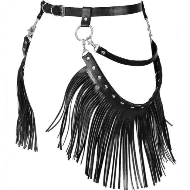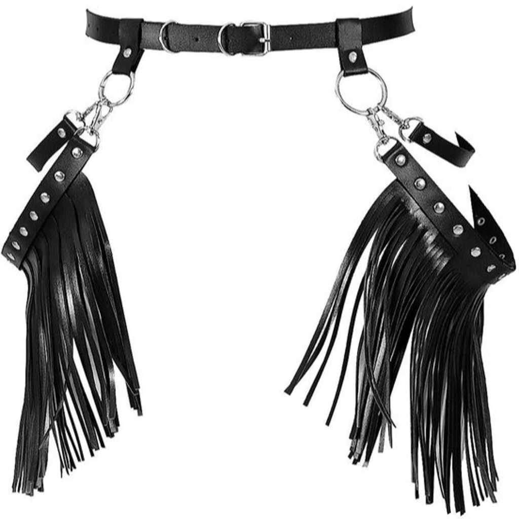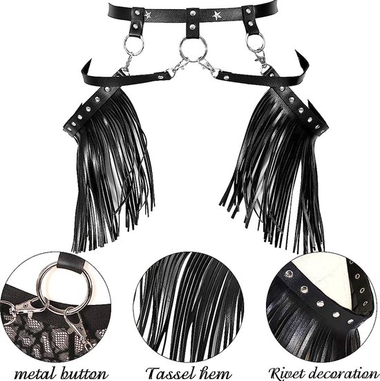 Het harnas is voorzien van speelse kwastjes aan de zijkanten, wat een erotische en ondeugende toets toevoegt aan je look. Het accentueert je figuur en laat je er verleidelijk uitzien.