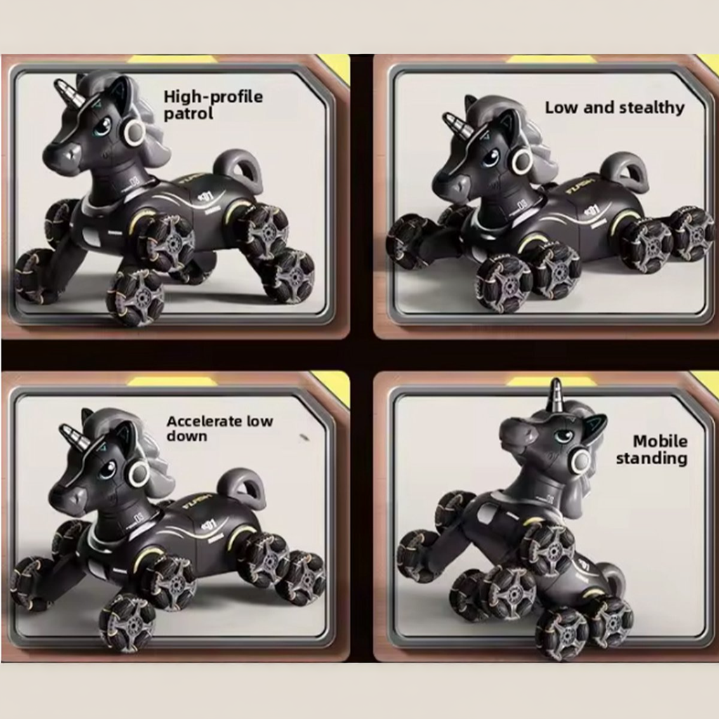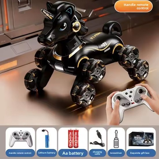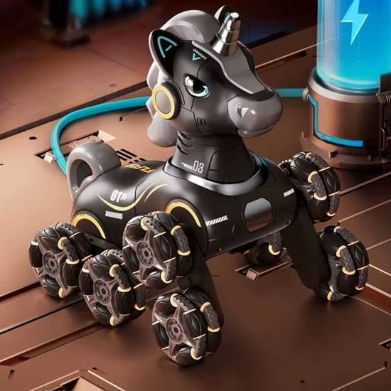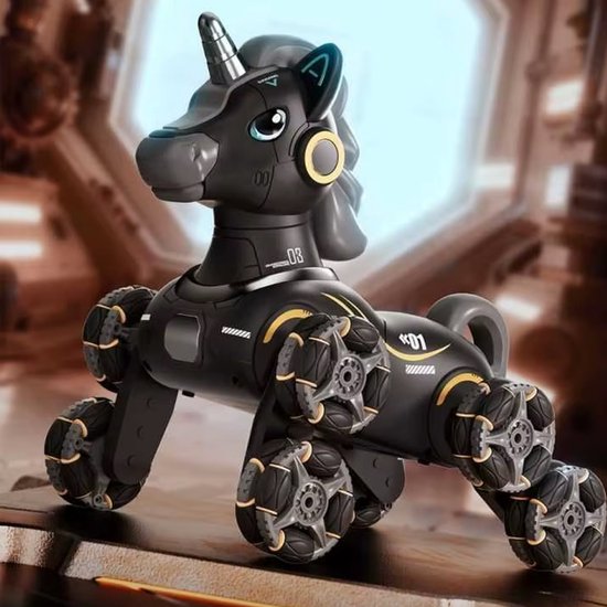 Deze unieke RC eenhoorn combineert fantasie met technologie. Dankzij de 8 multidirectionele wielen rijdt hij soepel vooruit, achteruit en zijwaarts, en draait hij moeiteloos rond. De afstandsbediening zorgt voor eenvoudige en nauwkeurige besturing. Met ingebouwde licht- en geluidseffecten wordt elke rit een echte belevenis. De eenhoorn is uitgerust met een oplaadbare lithiumbatterij en wordt geleverd met accessoires voor direct speelplezier. Het robuuste ontwerp en de stabiele constructie maken hem geschikt voor zowel binnen als buiten. Een perfect cadeau voor kinderen die dol zijn op actie en fantasie.