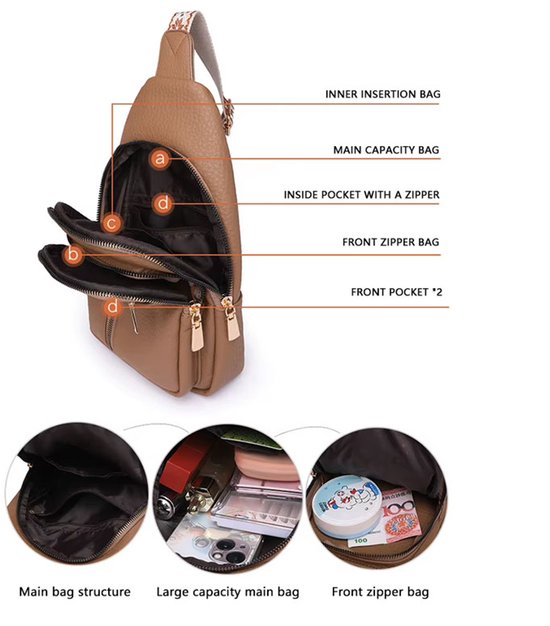 Een stijlvolle en praktische schoudertas die je overal mee naartoe kunt nemen. Deze casual borsttas is gemaakt van hoogwaardig PU-leer en heeft een waterdichte afwerking, zodat je spullen altijd goed beschermd zijn. Dankzij het compacte formaat draag je hem makkelijk crossbody, ideaal voor een dagje weg, een festival of tijdens het reizen.