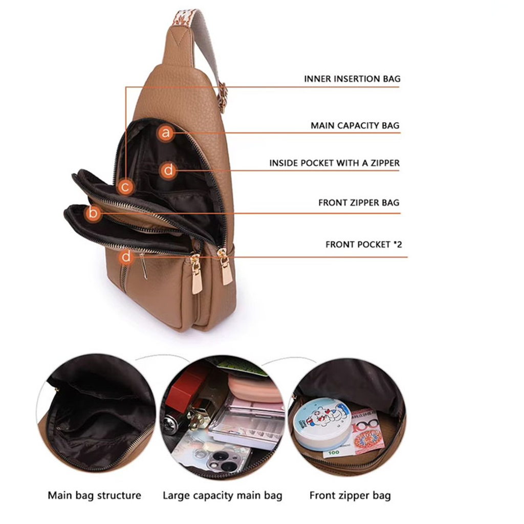 Een stijlvolle en praktische schoudertas die je overal mee naartoe kunt nemen. Deze casual borsttas is gemaakt van hoogwaardig PU-leer en heeft een waterdichte afwerking, zodat je spullen altijd goed beschermd zijn. Dankzij het compacte formaat draag je hem makkelijk crossbody, ideaal voor een dagje weg, een festival of tijdens het reizen.