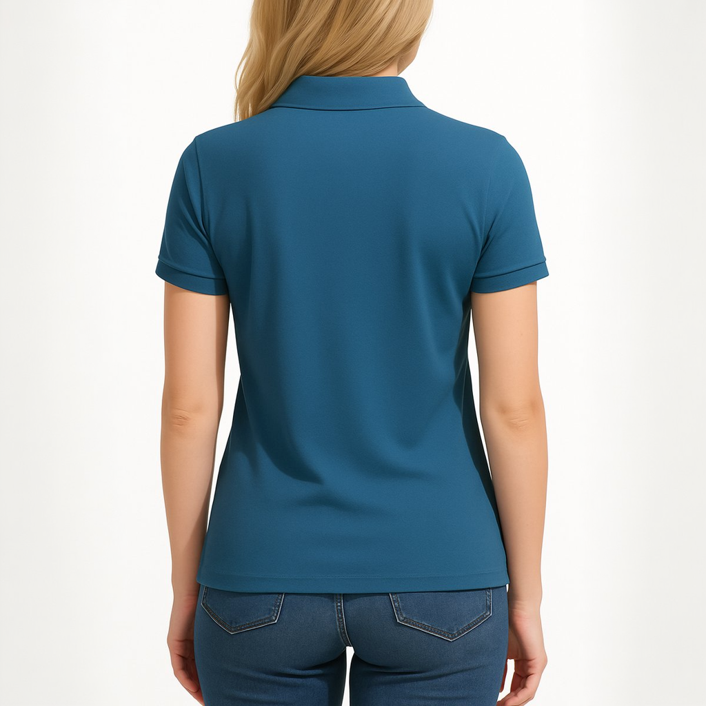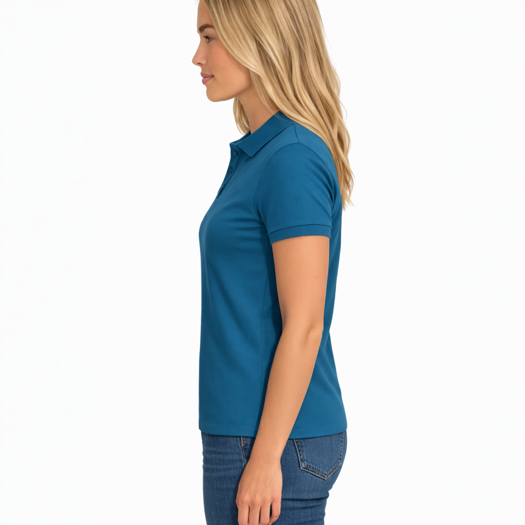 Klassieke dames polo in lichtblauw met getailleerde pasvorm en vernieuwde lengte. Gemaakt van 100% gekamd ringspun katoen (180 g/m²) voor zacht draagcomfort en stevigheid. Met korte mouwen, kraag en knoopsluiting: stijlvol, veelzijdig en tijdloos.