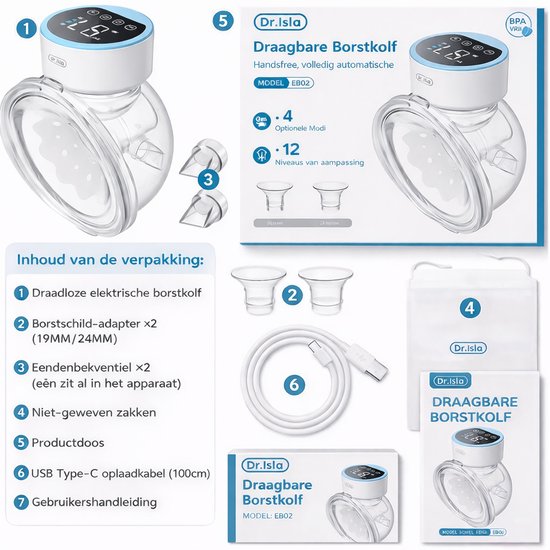 Deze innovatieve elektrische borstkolf is speciaal ontworpen voor moderne moeders die comfort, flexibiliteit en efficiëntie zoeken. Dankzij het handsfree en draagbare ontwerp kun je eenvoudig kolven zonder je dagelijkse activiteiten te onderbreken. Ideaal voor thuis, onderweg of op het werk.
