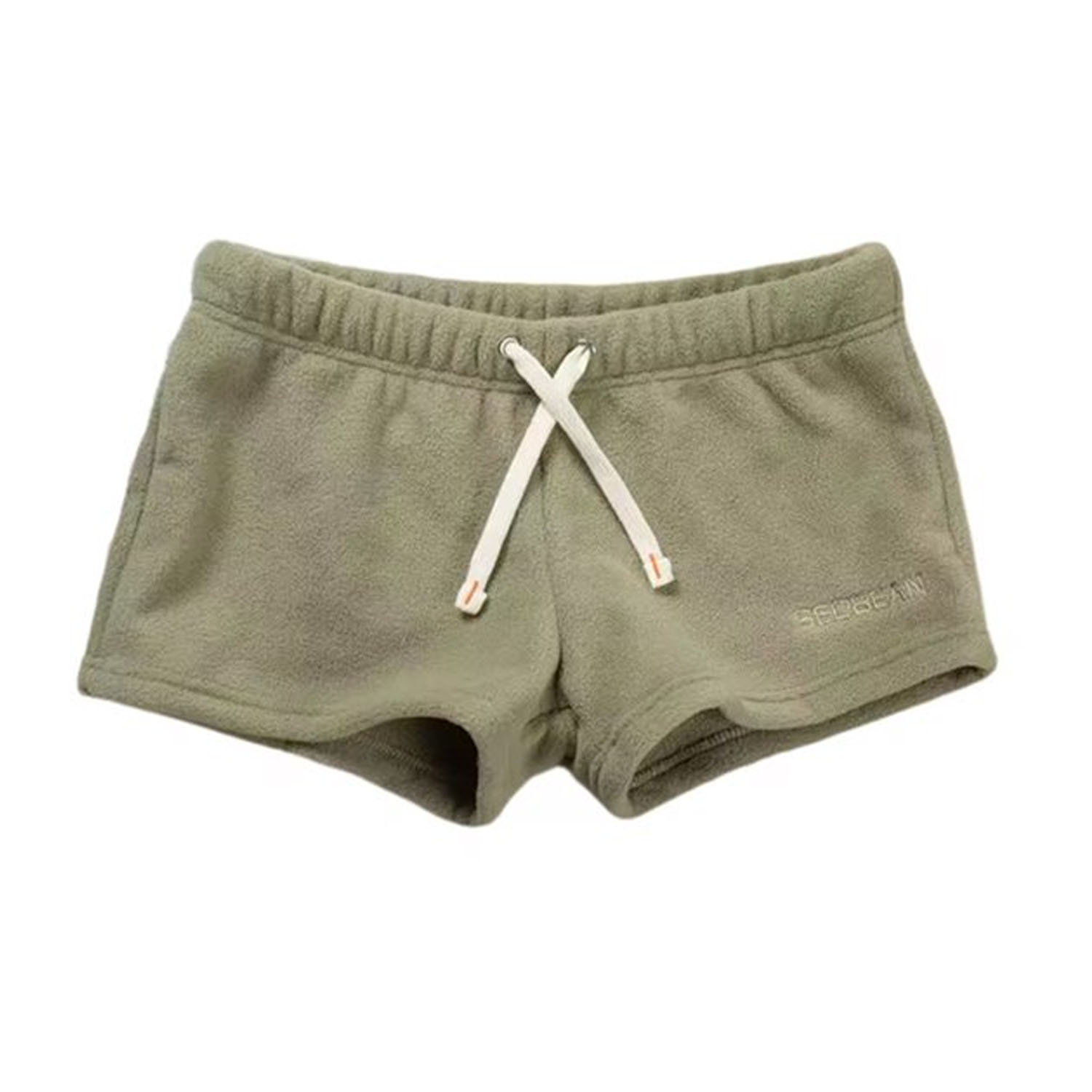 Deze olijfgroene herenshorts zijn gemaakt van zachte badstof, wat zorgt voor een comfortabele en luxueuze feel. De korte pasvorm accentueert het atletische silhouet en biedt optimale bewegingsvrijheid. De elastische tailleband met wit trekkoord zorgt voor een verstelbare en stevige pasvorm. Aan de voorkant is subtiel een geborduurd logo aangebracht voor een stijlvolle en minimalistische look. De shorts zijn perfect geschikt voor warme zomerdagen, zowel op het strand als tijdens het loungen thuis. Dankzij het ademende materiaal blijven ze koel en comfortabel, zelfs bij hoge temperaturen. Combineer ze met een T-shirt of tanktop voor een relaxte, casual outfit.