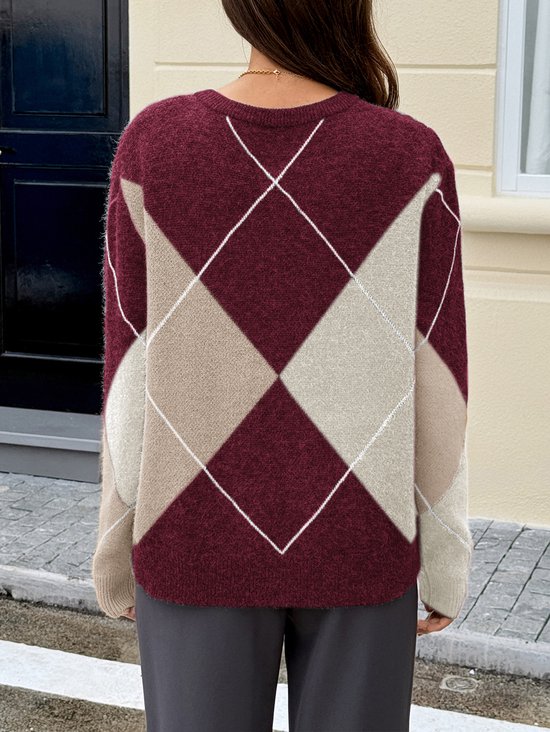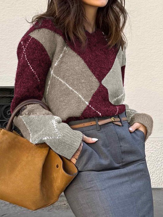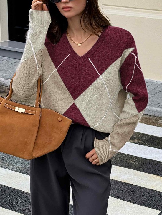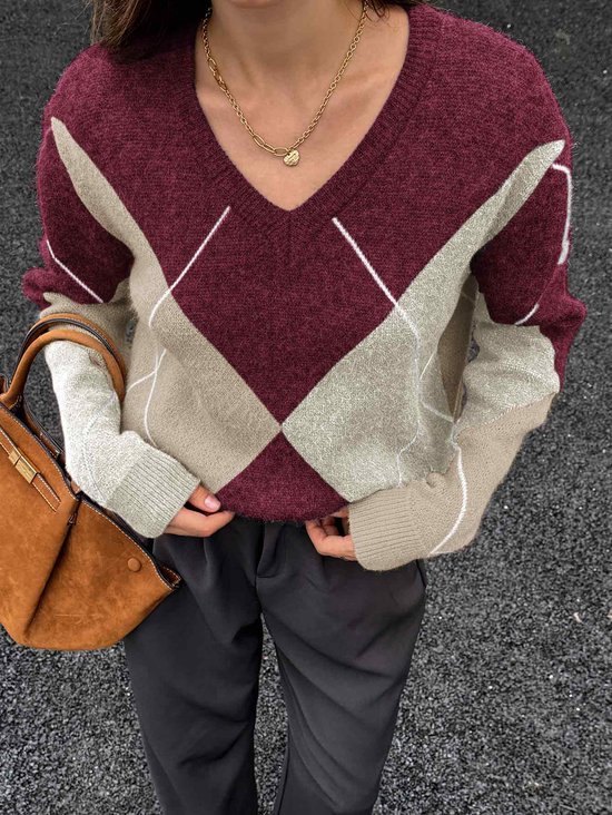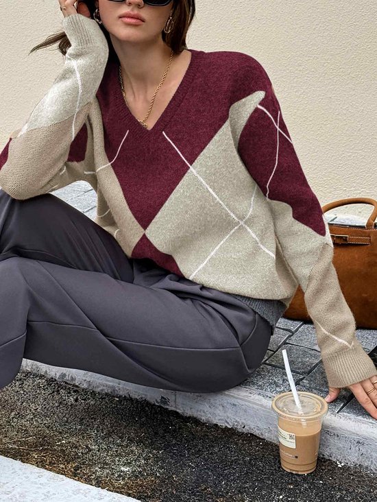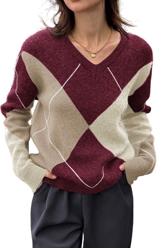 Trendy dames trui met ruitpatroon en V-hals