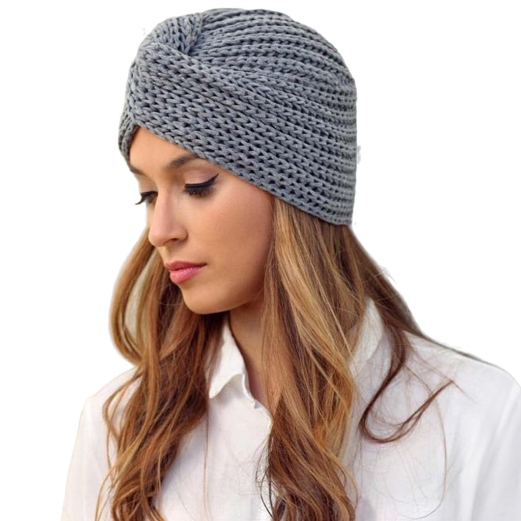Deze turban hoed is gemaakt van zachte acryl wol.