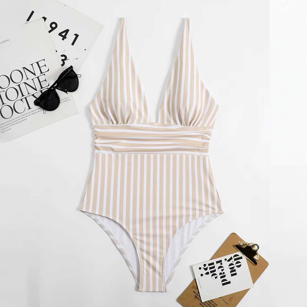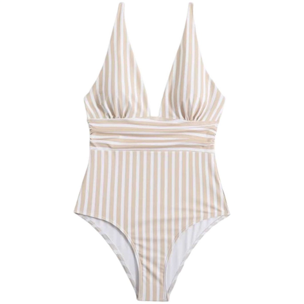 Deze elegante en stijlvolle badpak met diepe V-hals en gestreept design accentueert je figuur op een flatterende manier. Gemaakt van hoogwaardig polyester, biedt het een comfortabele en aansluitende pasvorm. Perfect voor een trendy strandlook of een luxe zwembadervaring.