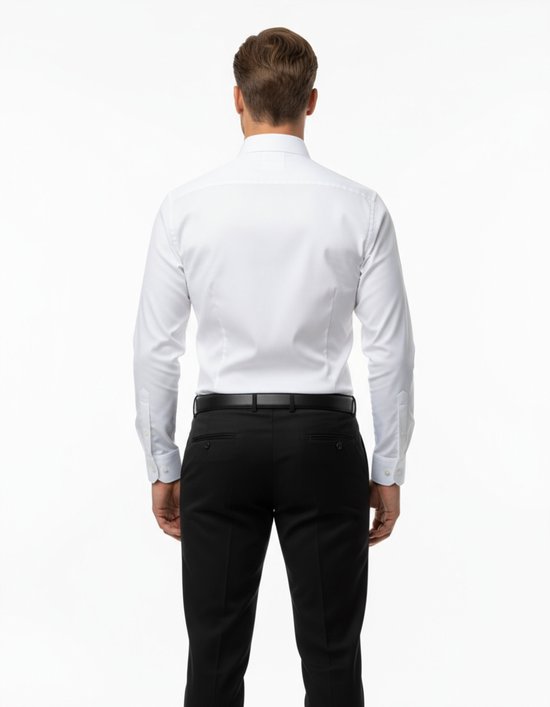 Het witte overhemd is een onmisbaar kledingstuk voor elke man. De slim fit pasvorm zorgt voor een moderne, verzorgde look. Uitgevoerd met een klassieke kraag en knoopsluiting vooraan. De lange mouwen met manchetten maken het zowel formeel als veelzijdig. De soepele, gladde stof voelt zacht aan en blijft de hele dag fris. Perfect voor zakelijke bijeenkomsten, bruiloften of formele diners. Wit combineert moeiteloos met alle kleuren en stijlen, waardoor dit overhemd eindeloos draagbaar is.