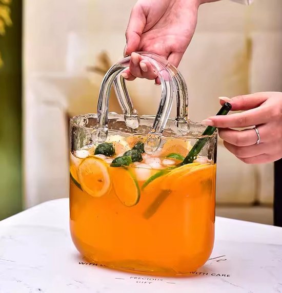 Het ontwerp in de vorm van een stijlvolle handtas maakt dit stuk niet alleen praktisch, maar ook een echte eyecatcher op tafel of in de bar. Of je nu een feestje organiseert, een bijzonder geschenk zoekt of gewoon iets unieks wilt om je drank in te serveren: deze glazen handtas combineert fun met elegantie.