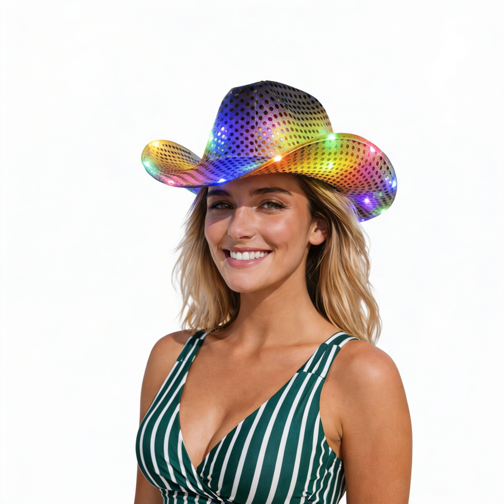 Deze cowboyhoed met LED-verlichting is een echte eyecatcher op elk feest. De hoed geeft meerdere kleuren licht voor een opvallend effect. Ideaal voor carnaval, festivals, bruiloften of vrijgezellenfeesten. Gemaakt van lichtgewicht materiaal en comfortabel om te dragen. Dankzij het verstelbare design past hij op bijna elk hoofd. Breng direct sfeer en vrolijkheid met deze unieke knipperende partyhoed.