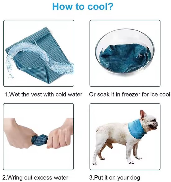 Je hoeft de koelband alleen even nat te maken met koud water en uit te wringen – daarna blijft hij urenlang verkoelend. Dankzij het lichte en flexibele ontwerp kan je hond vrij bewegen zonder dat het stoort. Bovendien is de band eenvoudig te reinigen en steeds opnieuw te gebruiken.