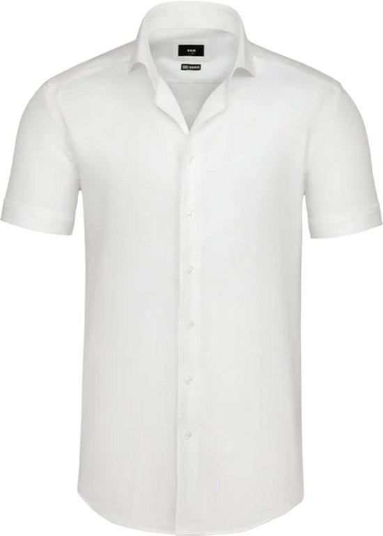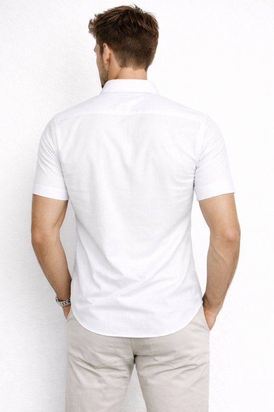 Gemaakt van hoogwaardig polyester, voelt het materiaal licht en soepel aan op de huid. Hierdoor is het overhemd ideaal voor dagelijks gebruik en blijft het langdurig mooi in vorm. De klassieke kraag en knoopsluiting zorgen voor een tijdloze uitstraling, terwijl de korte mouwen extra draagcomfort bieden tijdens warmere dagen.