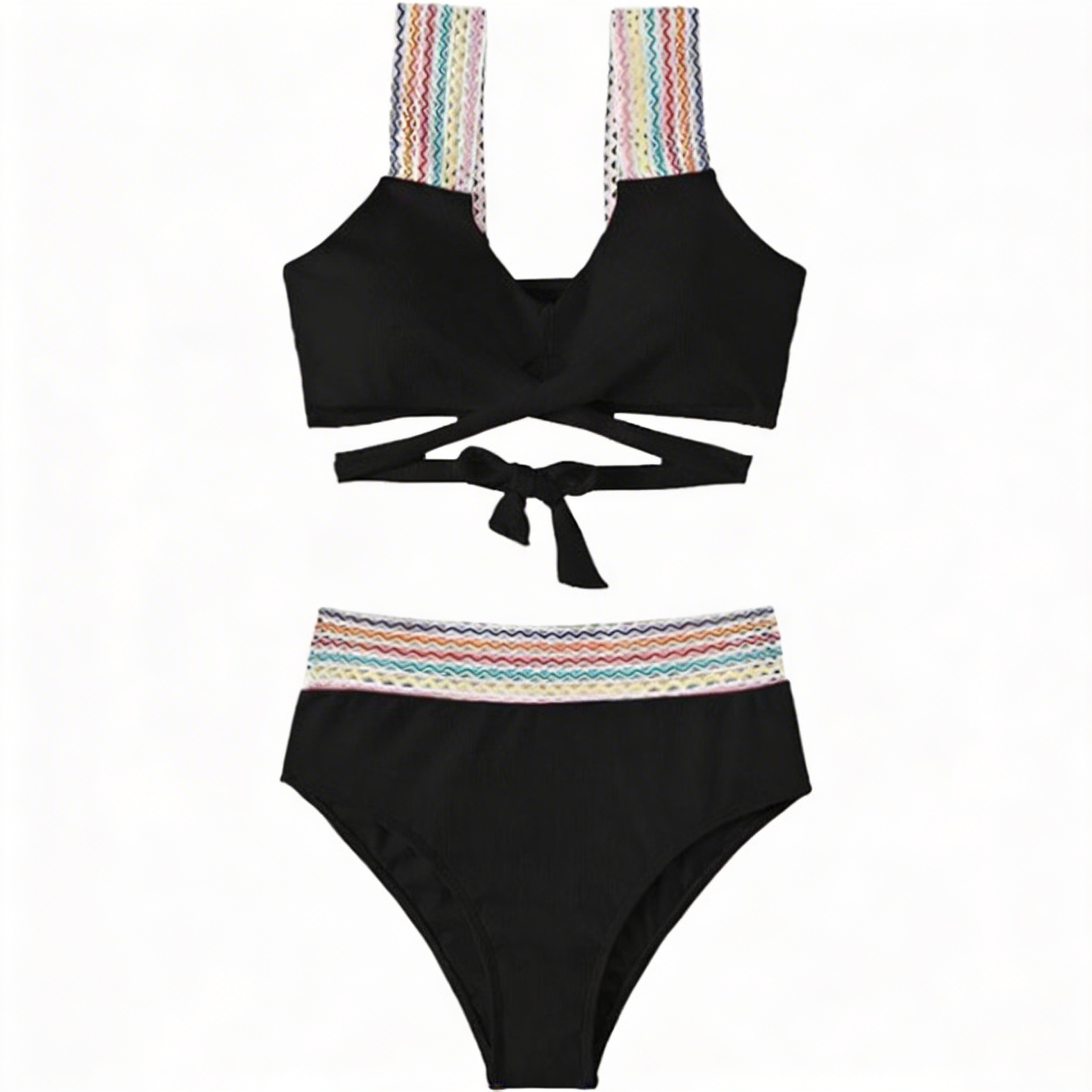 Bikini met een hoog taillebroekje en brede schouderbanden, gemaakt van stretchy ribstof met subtiele borduursels en een strikdetail voor een comfortabele en stijlvolle pasvorm.