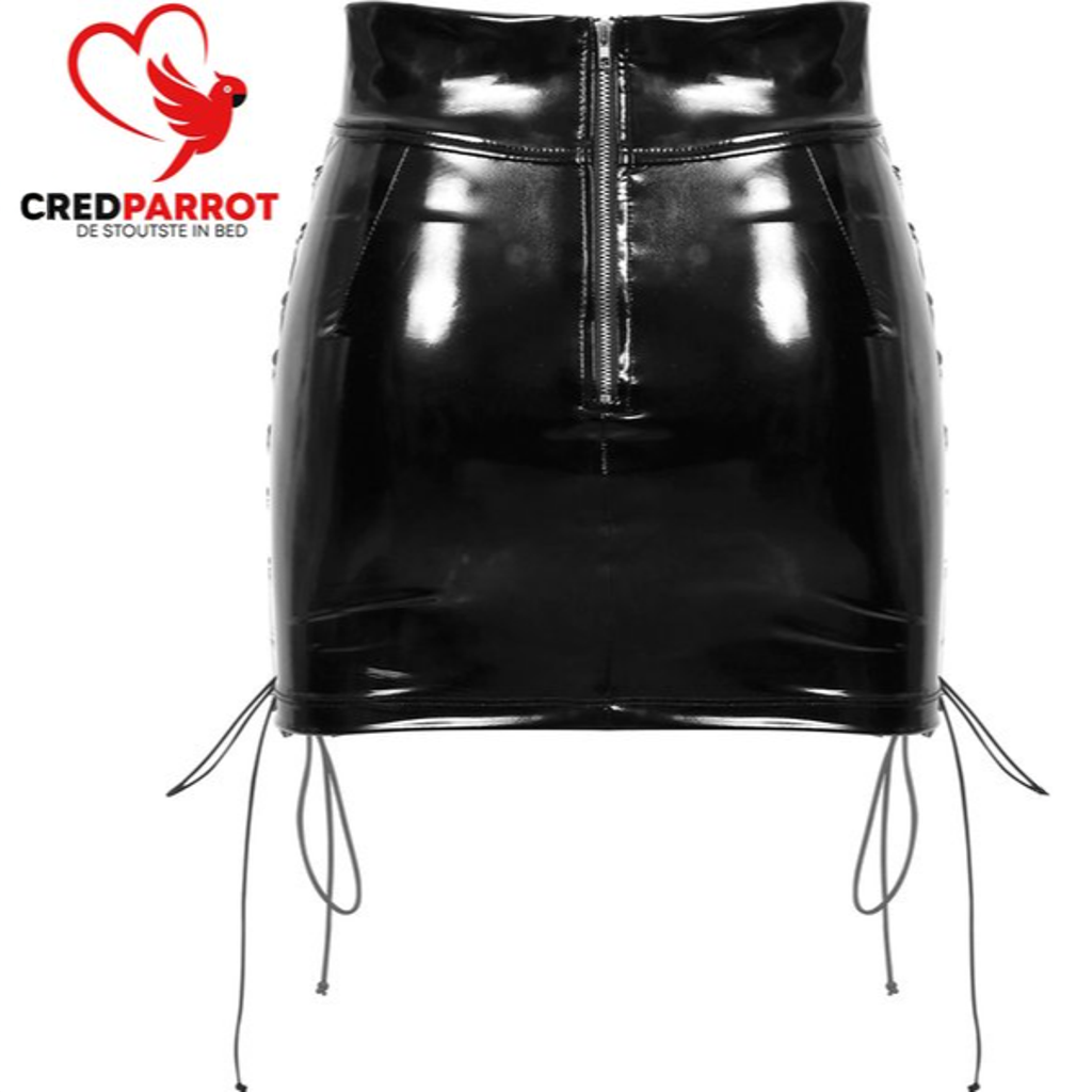 Deze latex rok is een verleidelijk kledingstuk met een transparante look aan de zijkanten, gecreëerd door middel van touwen die door het leder zijn gevlochten. Dit geeft de rok een extra uitdagende uitstraling. De rok heeft een rits aan de achterzijde, waardoor hij makkelijk aan en uit te trekken is. Het materiaal is gemaakt van hoogwaardig PU leder en heeft een gladde en glanzende afwerking. Dit maakt de rok niet alleen comfortabel om te dragen, maar ook een echte eyecatcher voor een spannende avond uit of een speciale gelegenheid.