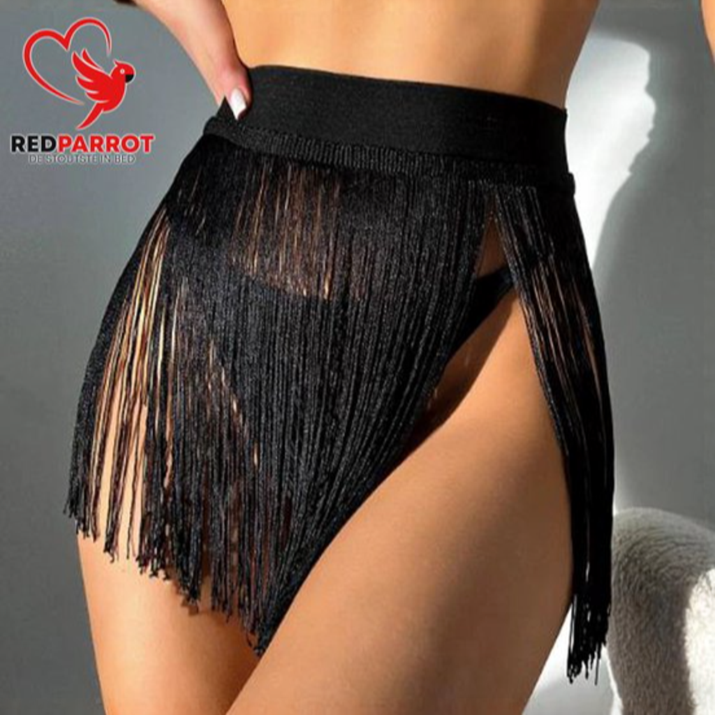 Deze semi transparante rok is zeer sexy door de afwerking van de draadjes. Hierdoor kan je op elk moment gedeeltelijk door de rok heen kijken. Erg leuk voor een leuke date, themafeesten, rollenspellen, festivals en natuurlijk in de sferen waarin u deze rok het liefste gebruikt. De rok valt door de elastische band altijd fijn om je middel. Het is een uitvoering die je doorgaans gebruikt als hoge taille model, maar het product is ook te gebruiken als lage taille model.