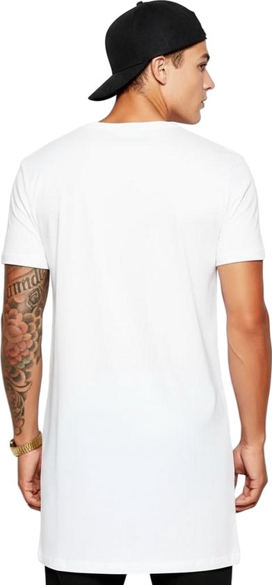 Het witte lange aansluitende shirt van katoen is een fris en stijlvol kledingstuk voor elke garderobe. Met zijn ronde hals en korte mouwen blijft het ontwerp klassiek en eenvoudig. De verlengde lengte geeft het shirt een trendy en eigentijdse uitstraling. Dankzij de nauwsluitende fit oogt het slank en modern, terwijl het zachte katoen optimaal draagcomfort biedt. Ideaal om casual te dragen, maar ook perfect als basislaag onder een jasje of vest. Dit witte shirt is veelzijdig en tijdloos, waardoor het een onmisbare basic is voor uiteenlopende stijlen.