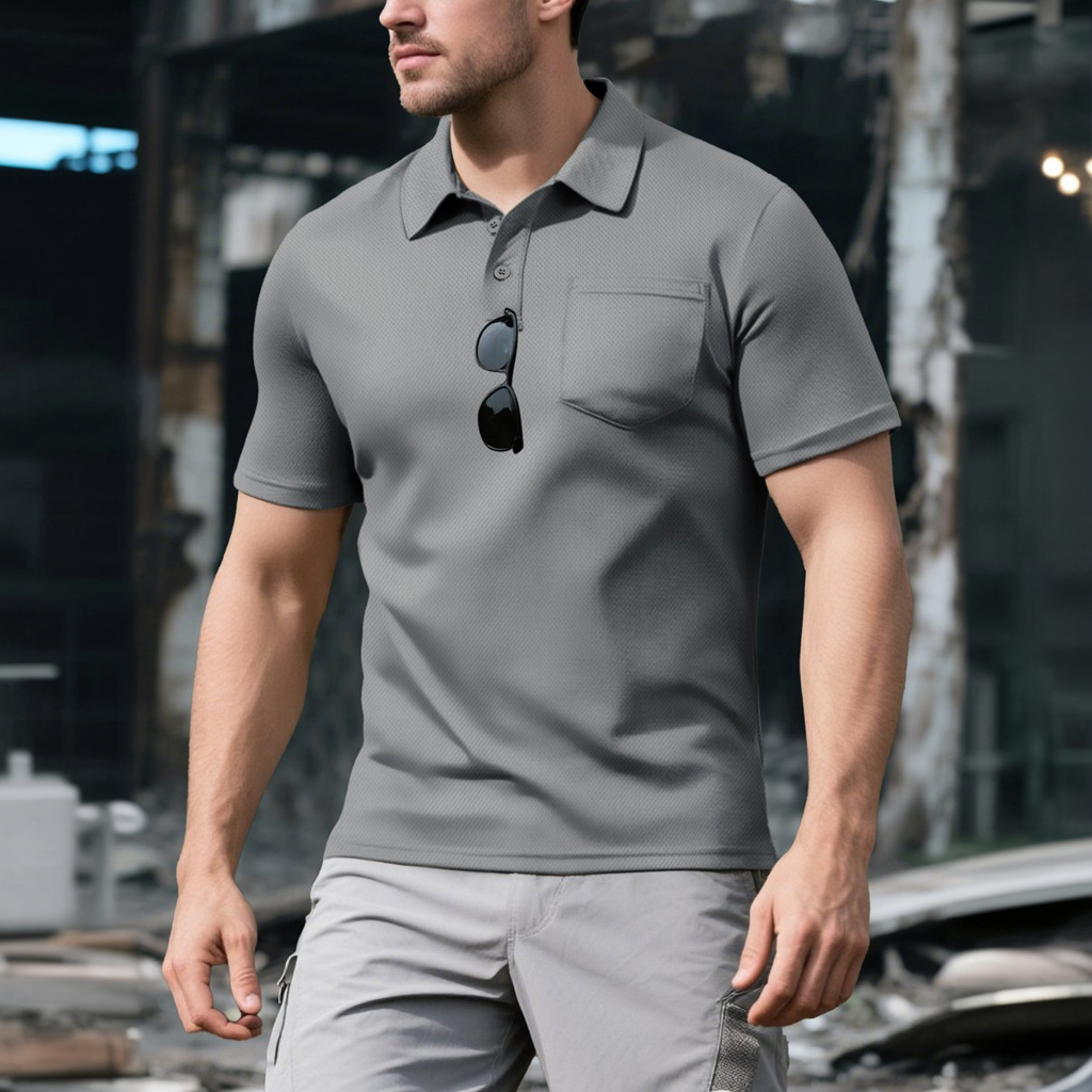 Deze moderne grijze polo combineert een tijdloos design met optimaal draagcomfort. Het shirt is vervaardigd uit een hoogwaardig, ademend materiaal dat licht aanvoelt op de huid en voldoende stretch biedt voor maximale bewegingsvrijheid. Dankzij de sportieve pasvorm sluit de polo mooi aan op het lichaam, zonder in te leveren op comfort. Dit maakt het kledingstuk geschikt voor zowel dagelijks gebruik als meer geklede momenten.