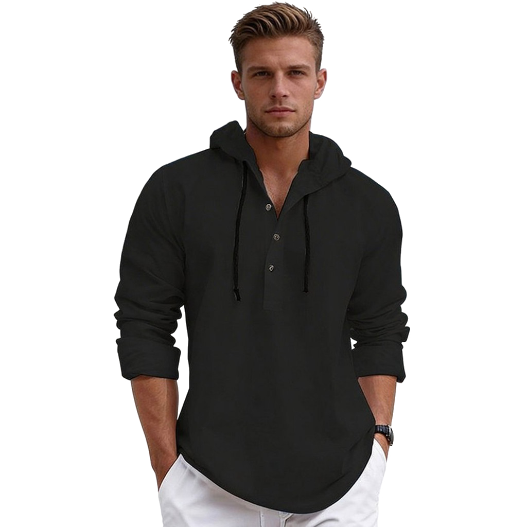 Dankzij de capuchon en subtiele knoopsluiting krijgt het shirt een unieke, sportieve twist, terwijl het nog steeds luchtig en comfortabel blijft. De hoogwaardige afwerking en nette stiksels zorgen voor een verzorgde en duurzame uitstraling.