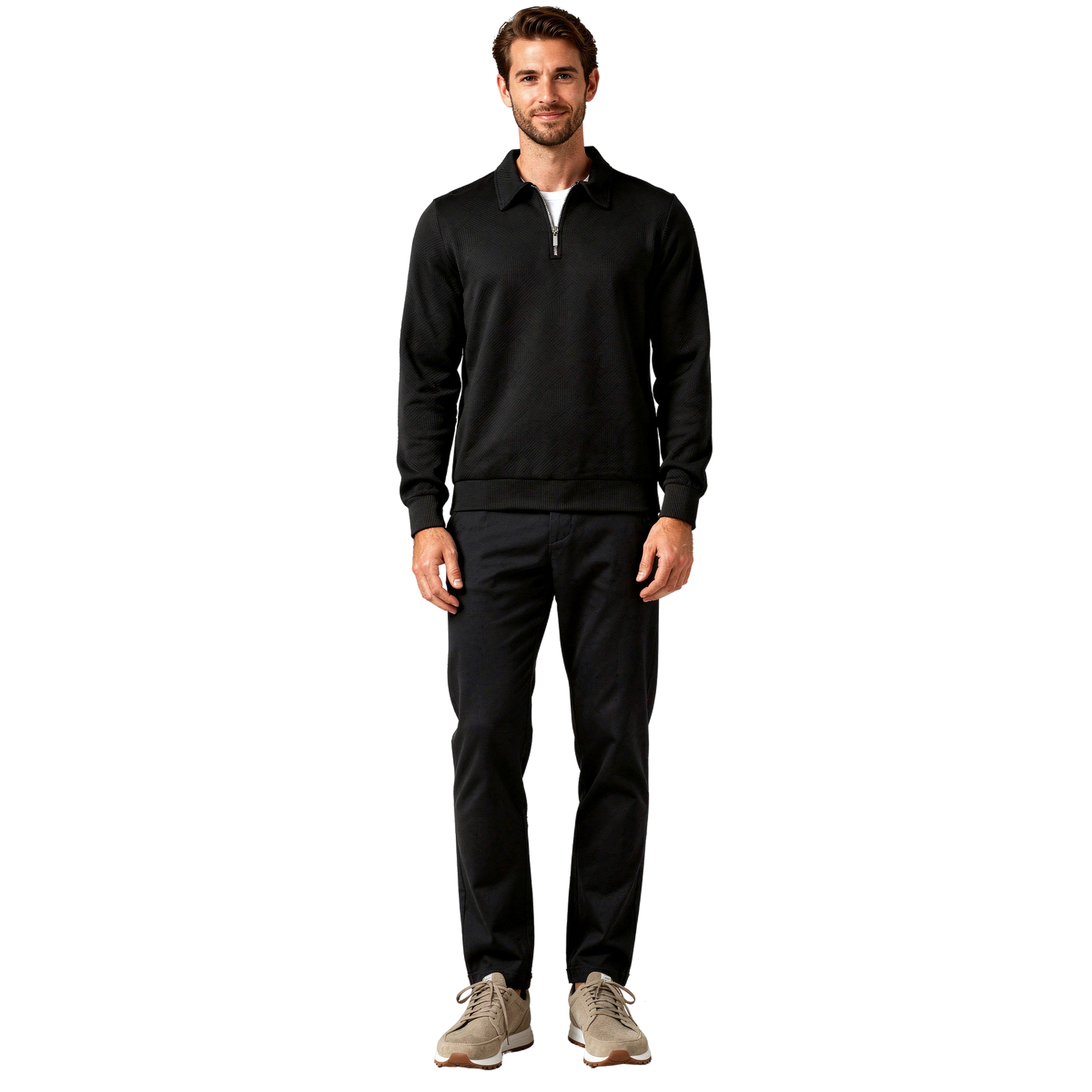 Comfortabele Heren Trui met Ritskraag en Luxe Structuur