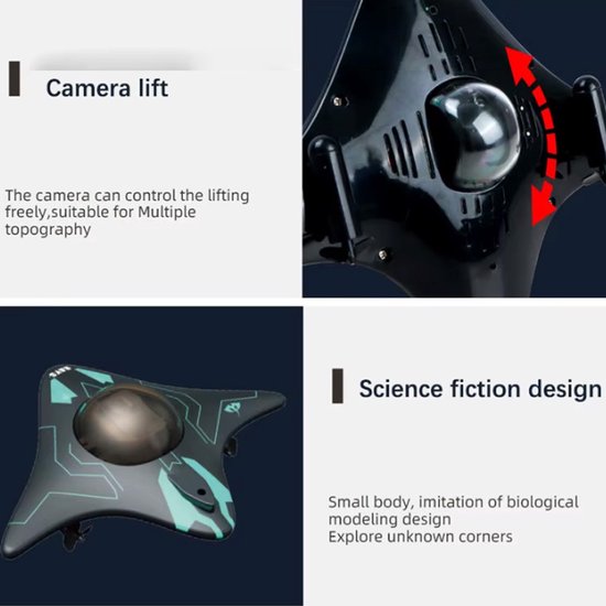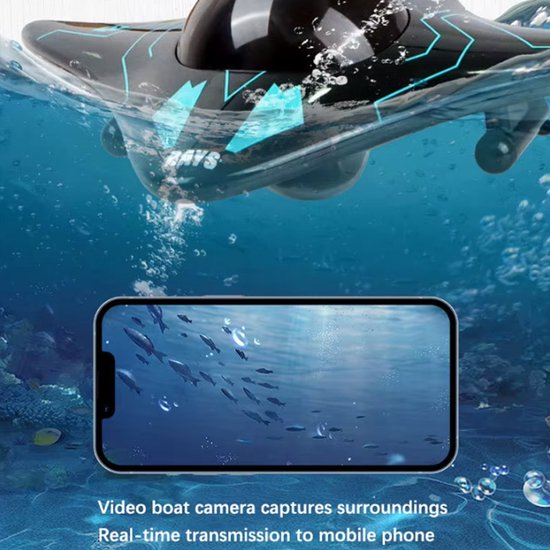 De boot is uitgerust met een ingebouwde camera met live beeldtransmissie, waardoor je direct kunt zien wat er onder water gebeurt. Via WiFi verbind je de boot met je telefoon en bestuur je hem eenvoudig. Ideaal voor kinderen én volwassenen die houden van technologie en avontuur.