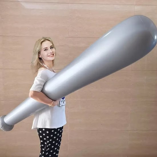 Deze gigantische opblaasbare honkbalknuppel van ongeveer 150 cm is een opvallend en humoristisch accessoire voor feestjes, evenementen en thema-avonden. Dankzij het grote formaat en het realistische knuppelontwerp zorgt dit item gegarandeerd voor een lach en veel aandacht.