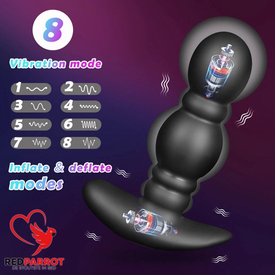 Zeer luxe en unieke opblaasbare vibrerende buttplug. De plug wordt geleverd met draadloze afstandsbediening die de plug kan voorzien van 8 verschillende vibrerende standen. Daarbij kan de plug op verschillende grotes worden opgeblazen tot een lengte van 17 centimeter en een breedte van 9 centimeter. De plug is van zeer hoge kwaliteit siliconen en gaat jaren mee. Zeer geschikt voor een leuke spannende date of natuurlijk om prive te gebruiken.