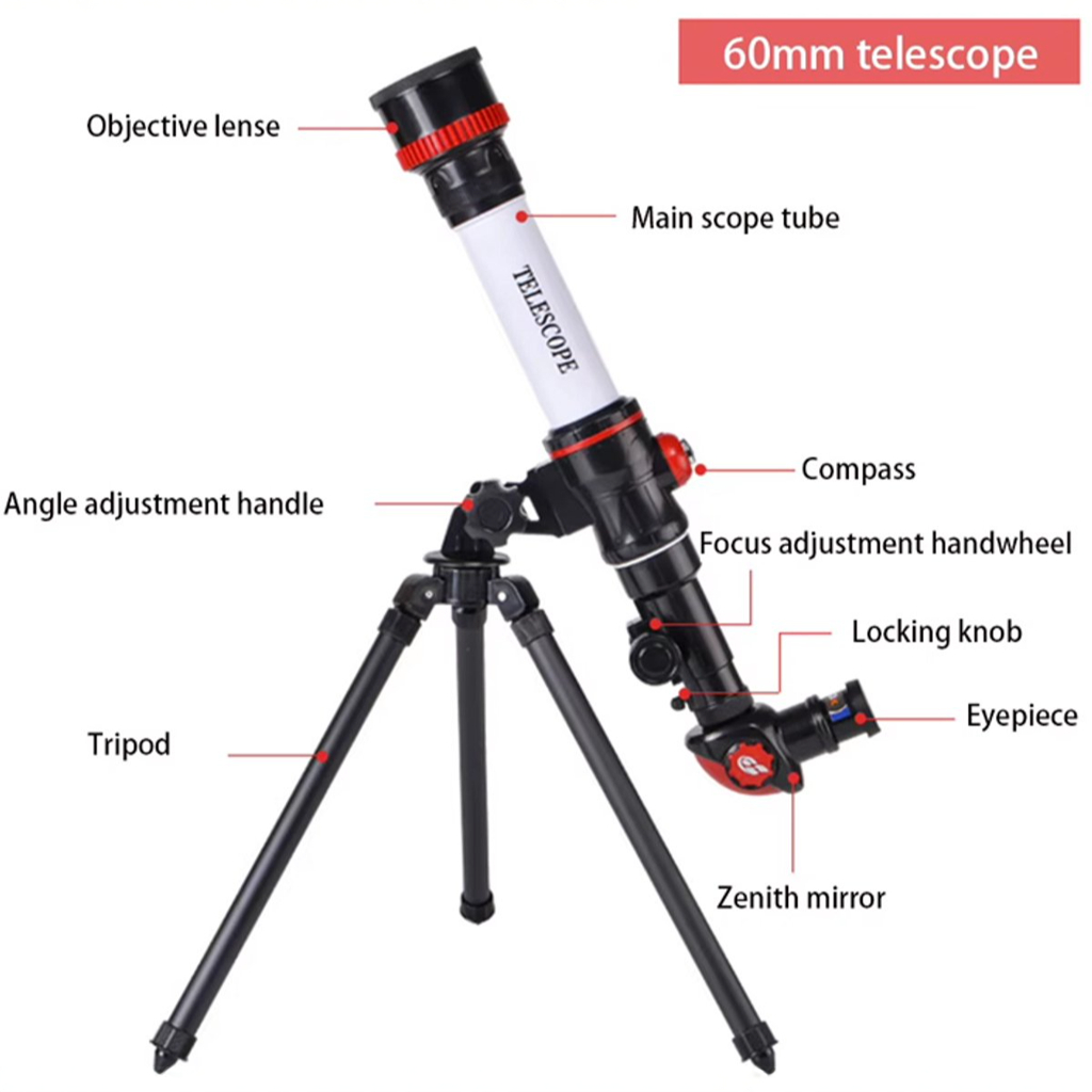 60mm objectieflens voor helder zicht op sterren en planeten.