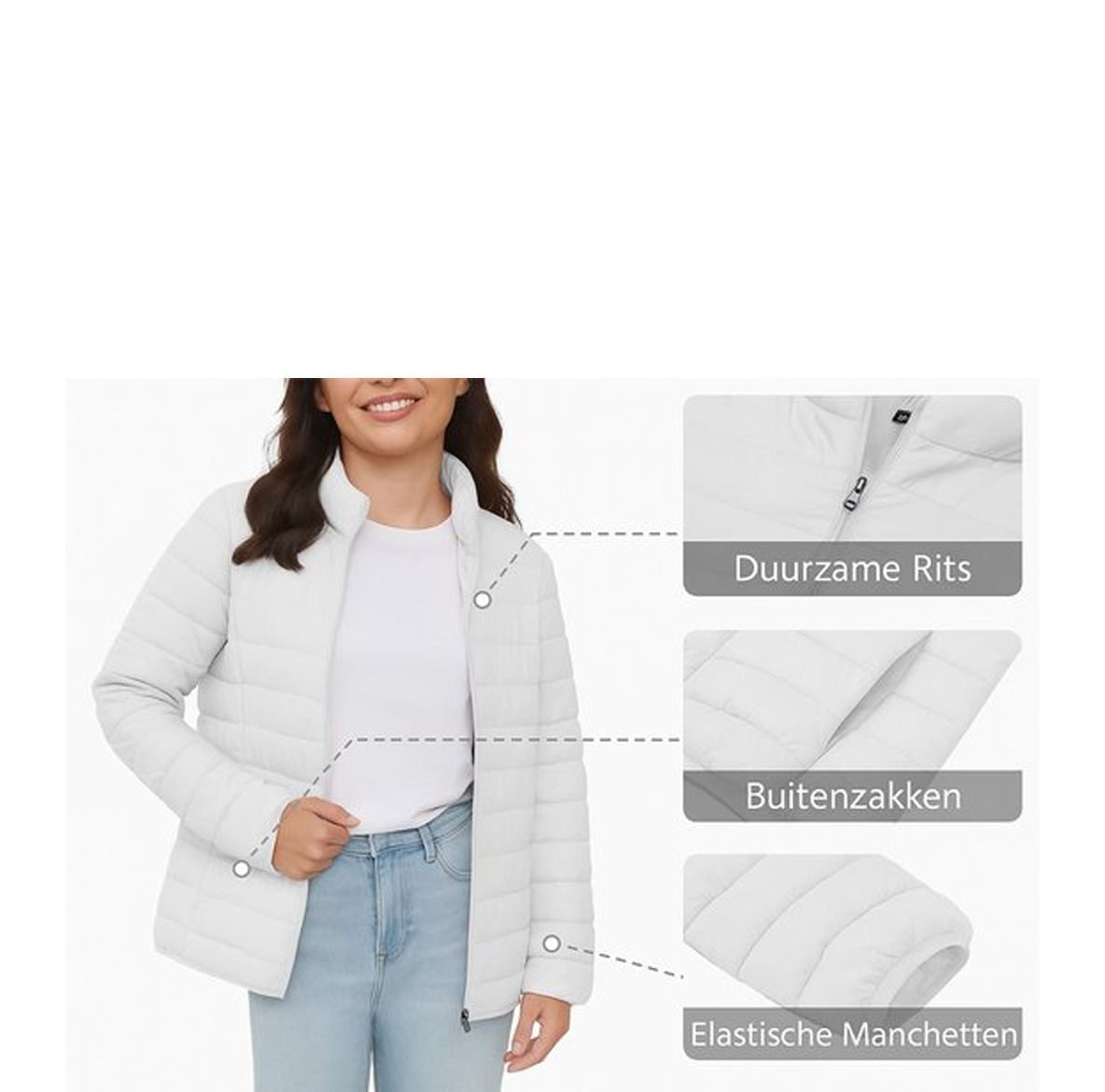 Deze lichtgewicht damesjas biedt een perfecte balans tussen stijl en comfort. De duurzame rits zorgt voor een lange levensduur en eenvoudig gebruik. Dankzij de handige buitenzakken neem je moeiteloos je essentials mee. De elastische manchetten sluiten goed aan en houden de warmte vast. Het tijdloze ontwerp maakt de jas geschikt voor elke gelegenheid, van een casual wandeling tot een dagje uit. Combineer de jas eenvoudig met jeans, sneakers of laarzen voor een veelzijdige en moderne look.
