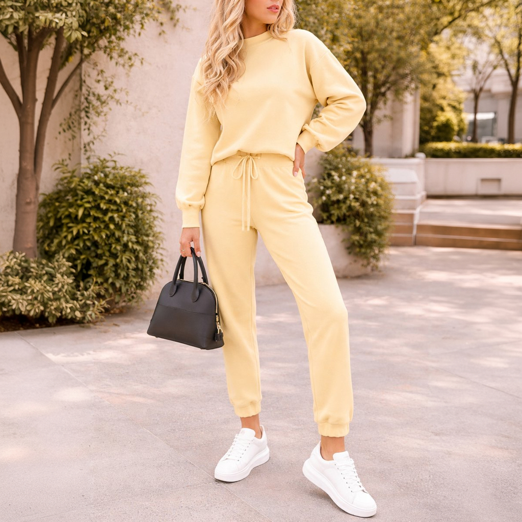 Deze 2-delige set is de perfecte combinatie van comfort, stijl en veelzijdigheid. De set bestaat uit een losvallende top met lange mouwen en een aansluitende broek met elastische tailleband, waardoor je moeiteloos een trendy en ontspannen outfit creëert. Ideaal voor zowel thuis, onderweg als casual uitstapjes.