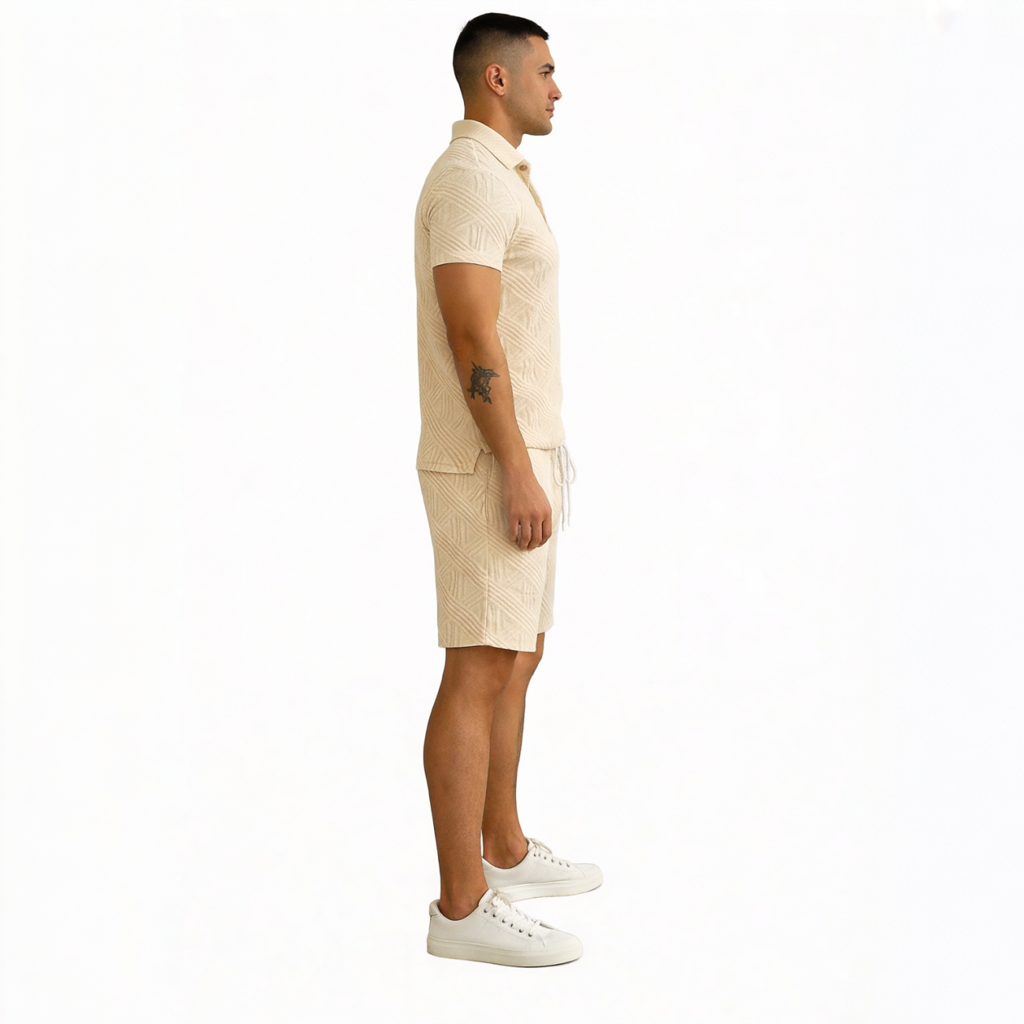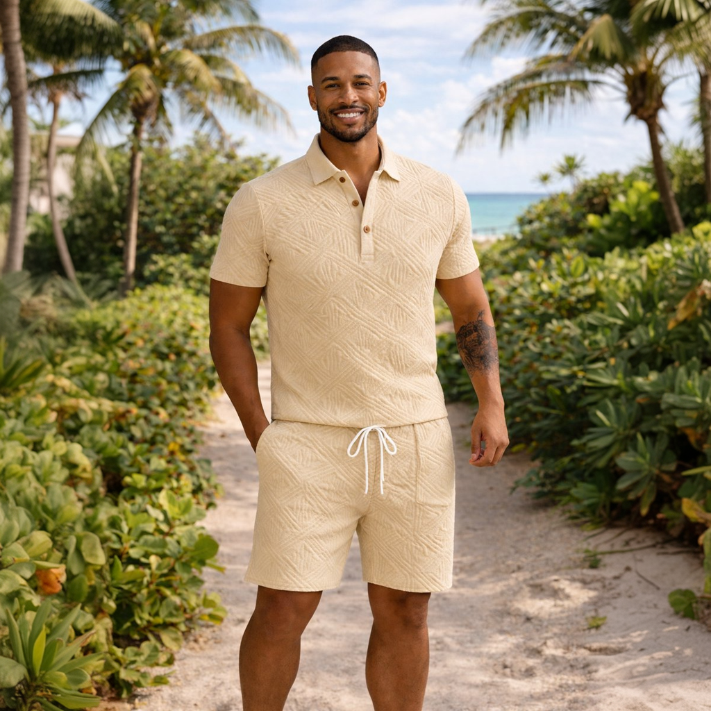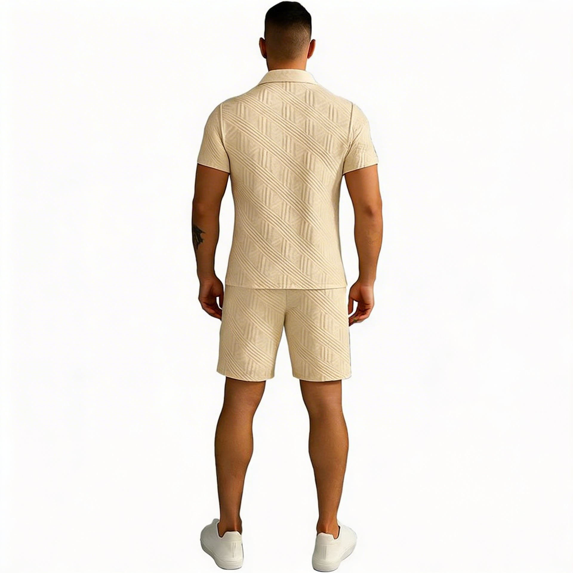 Deze heren set bestaat uit een poloshirt met korte mouwen en bijpassende shorts. Gemaakt van extra dikke, hoogwaardige stof voor comfort en duurzaamheid. De outfit is ideaal voor lente en zomer en combineert stijl met gemak. Het poloshirt heeft een moderne kraag en een nette afwerking. De shorts zijn voorzien van een elastische tailleband en praktische pasvorm. Perfect als casual outfit, sportief trainingspak of relaxte zomerse look.