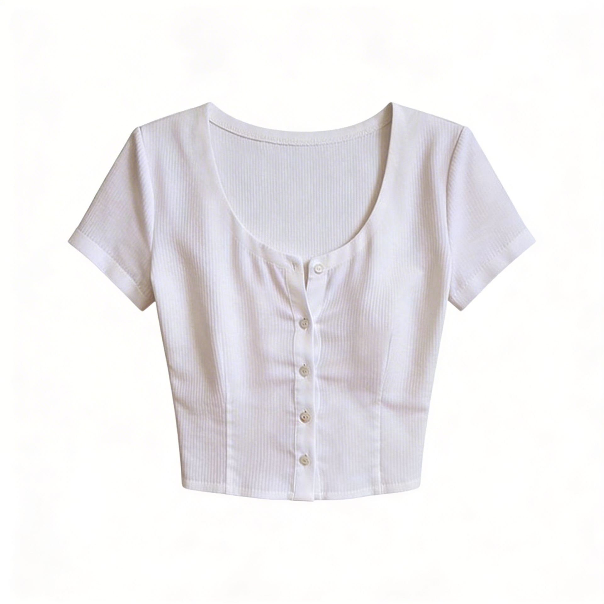 Veelzijdig Ontwerp: Met de 13 drukknopen aan de voorzijde kun je de top naar wens aanpassen. Draag hem met slechts enkele bovenste knopen dicht voor een speelse uitstraling, of open de knopen onderaan of in het midden om verschillende, opvallende stijlen te creëren.