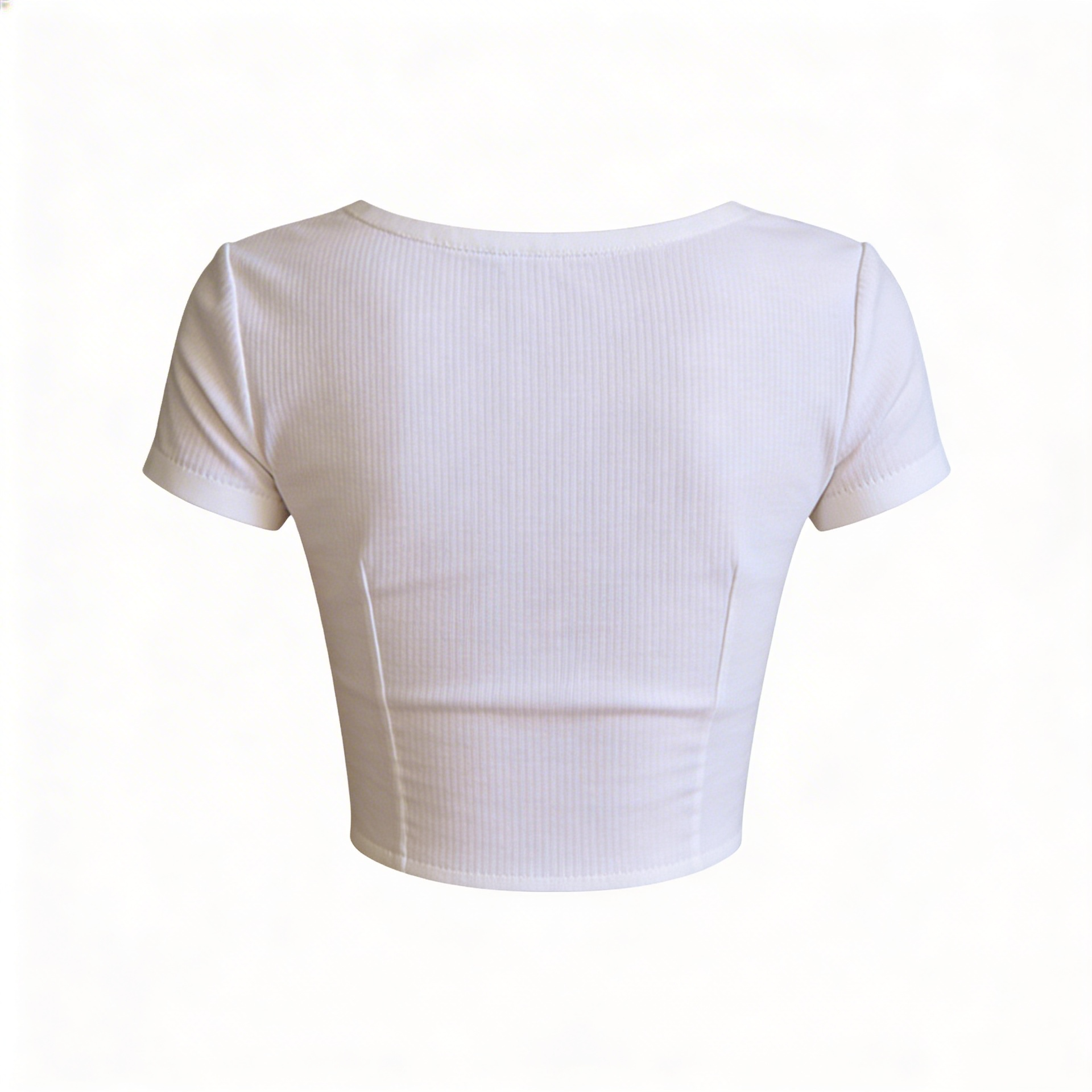 Speels en Verleidelijk: Of je nu een relaxte en leuke daglook wilt of juist iets erotisch en gedurfder, deze crop-top past zich aan aan je stemming en de gelegenheid.