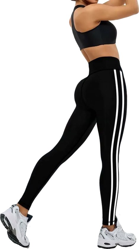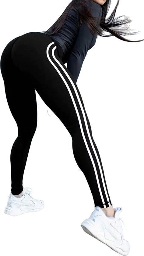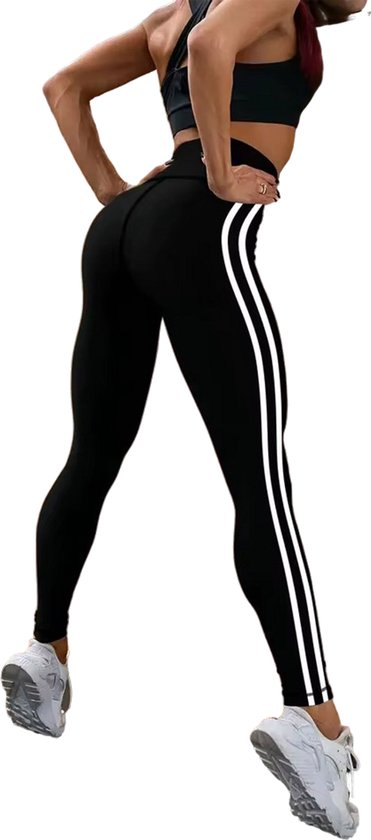 Deze sportlegging combineert functionaliteit met een moderne, sportieve look. De hoge taille biedt extra ondersteuning en accentueert je figuur. Het elastische, ademende materiaal zorgt voor optimaal comfort tijdens elke beweging. De dubbele witte strepen aan de zijkant geven een stijlvolle en dynamische uitstraling. Perfect voor in de sportschool, yoga of een casual dagje uit. Draag hem met een sporttop of hoodie voor een complete en trendy outfit.