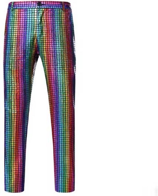 Sprankelende glitter partybroek in multicolor, perfect voor feestjes en speciale gelegenheden. Stijlvol, unisex en ideaal als onderdeel van een opvallend feestpak.