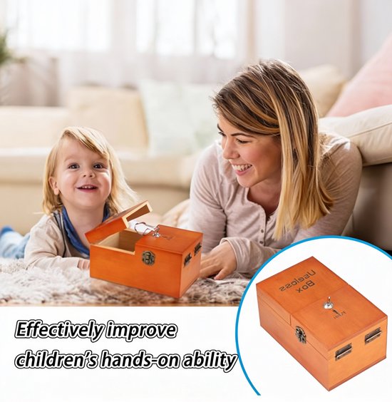 Deze Useless Box, ook wel oorzaak-en-gevolg doos genoemd, is een uniek en vermakelijk product dat nieuwsgierigheid en logisch denken stimuleert. Wanneer je de knop indrukt, opent de doos vanzelf en schakelt een mechanisme de knop weer uit, waarna de doos sluit. Dit eenvoudige maar slimme principe maakt het zowel leuk als leerzaam. Geschikt als educatief speelgoed voor kinderen, maar ook als grappige bureau-gadget of origineel cadeau voor volwassenen. Ideaal om spelenderwijs inzicht te krijgen in actie-reactie en mechanische werking.