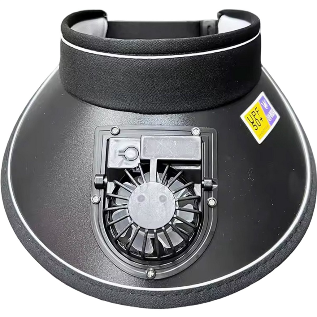Deze zwarte zonnevisor heeft een grote rand voor extra schaduw.