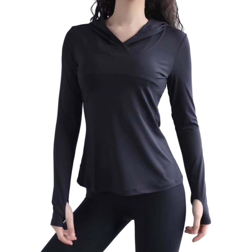Stijlvol en functioneel sportshirt met lange mouwen en capuchon, ontworpen voor optimale bewegingsvrijheid en comfort. De ademende stof voelt licht aan op de huid en voert warmte effectief af tijdens intensieve trainingen. Dankzij de strategisch geplaatste ventilatiegaatjes in de rug wordt extra luchtcirculatie gecreëerd, waardoor je fris en droog blijft. De elastische kwaliteit zorgt voor een mooie, aansluitende pasvorm zonder te knellen. Perfect voor fitness, yoga, hardlopen of andere sportactiviteiten, maar ook geschikt als comfortabele casual sportieve outfit.