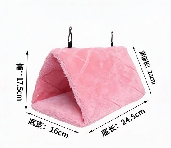 Deze pluche hangende vogelkooi-slaapplaats biedt jouw vogel een warme en veilige plek om te rusten en te slapen. Het zachte, isolerende materiaal zorgt voor extra comfort en helpt vogels zich geborgen te voelen, wat stress vermindert. Dankzij de stevige metalen ophanghaakjes is de slaapplaats eenvoudig en stabiel in vrijwel elke vogelkooi te bevestigen. Het compacte ontwerp is ideaal voor kleine vogels zoals parkieten, vinken en kanaries. Perfect voor gebruik in koelere periodes of als vaste rustplek in de kooi.