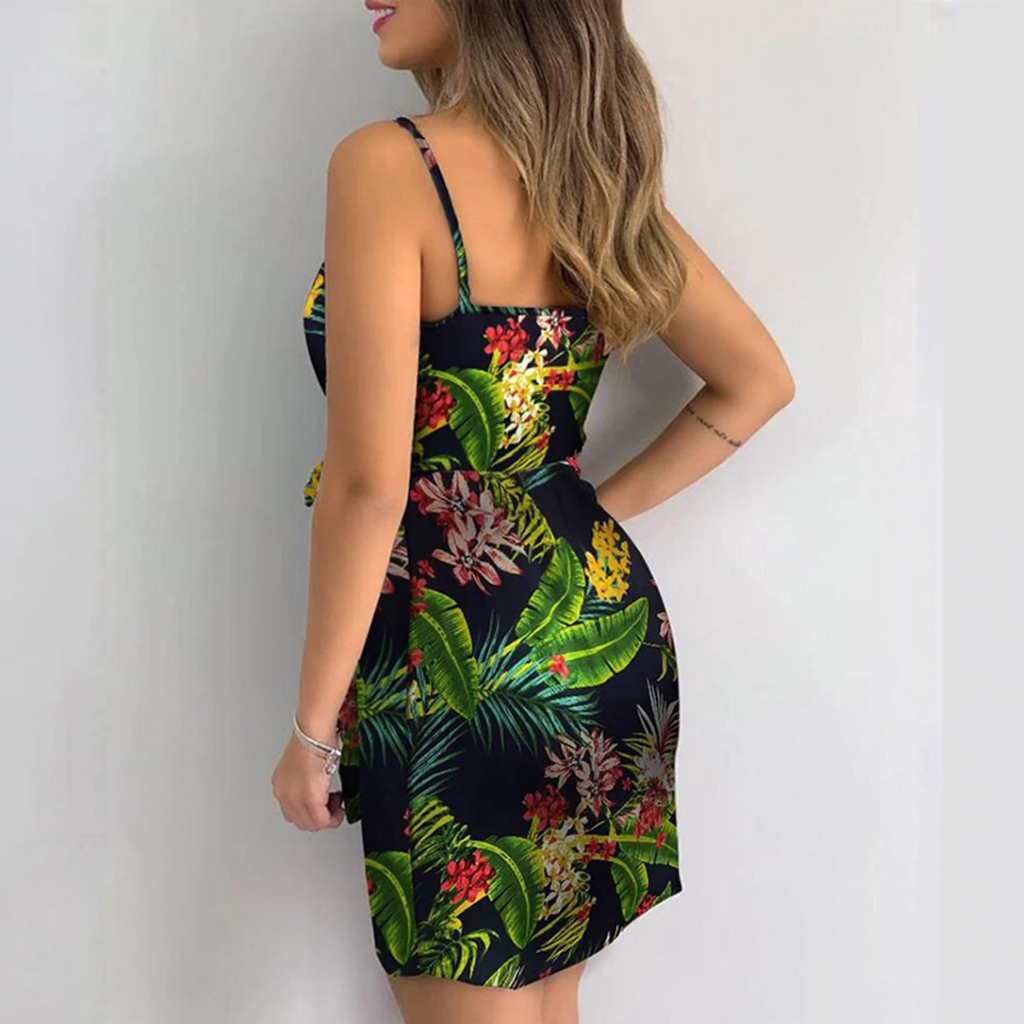 Deze oranje zomerjurk straalt vrolijkheid en elegantie uit. De tropische bloemenprint springt eruit tegen de warme perzikkleurige achtergrond. Spaghettibandjes en een diepe V-hals zorgen voor een vrouwelijke, zomerse uitstraling. De taille wordt geaccentueerd met een strikceintuur, wat een mooi silhouet creëert. De korte lengte maakt het ideaal voor warme dagen of zomerse evenementen. De lichte, soepele stof biedt optimaal draagcomfort. Combineer met sandalen of hakken voor een complete outfit.